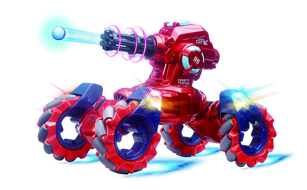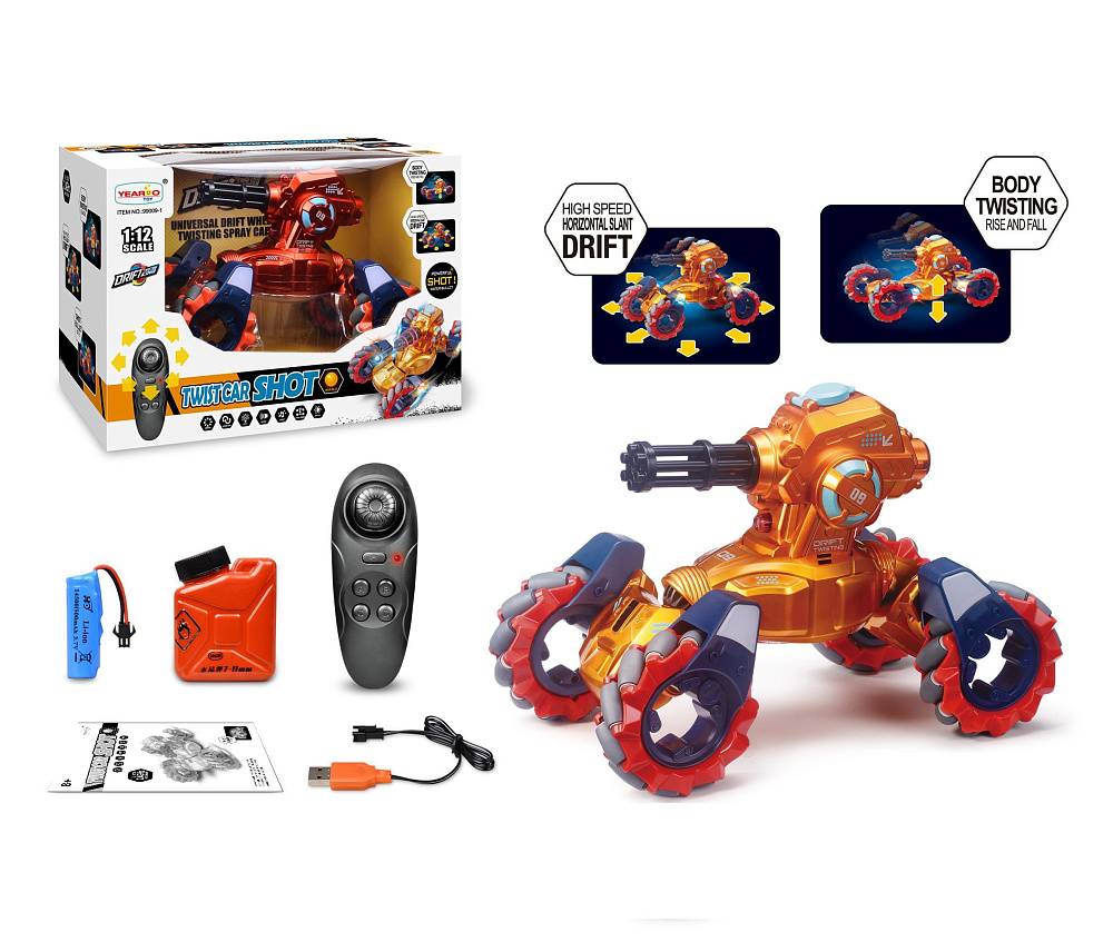 Радиоуправляемый дрифт Твистер Yearoo (стреляет пульками) 1:12 - 99009-1-RED - это машинка перевертыш дрифт Твистер, которая является несомненным хитом продаж среди радиоуправляемых моделей. Обновленная версия стала еще лучше. О такой машинке мечтает каждый мальчик. Возможности машинки просто невероятны. Она может ездить, крутиться на месте, и даже стрелять! Но главная особенность заключается в управлении и уникальных колесах с яркой светодиодной подсветкой. Данной машинкой можно управлять при помощи специального пульта, который входит в комплект с машинкой. Увлекательный процесс управления понравится не только детям, но и взрослым. И все это будет сопровождаться звуками работающего мотора, яркой подсветкой колес, паром и песнями. Особенно эффектно машинка смотрится в темноте.