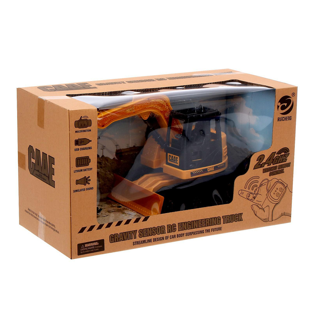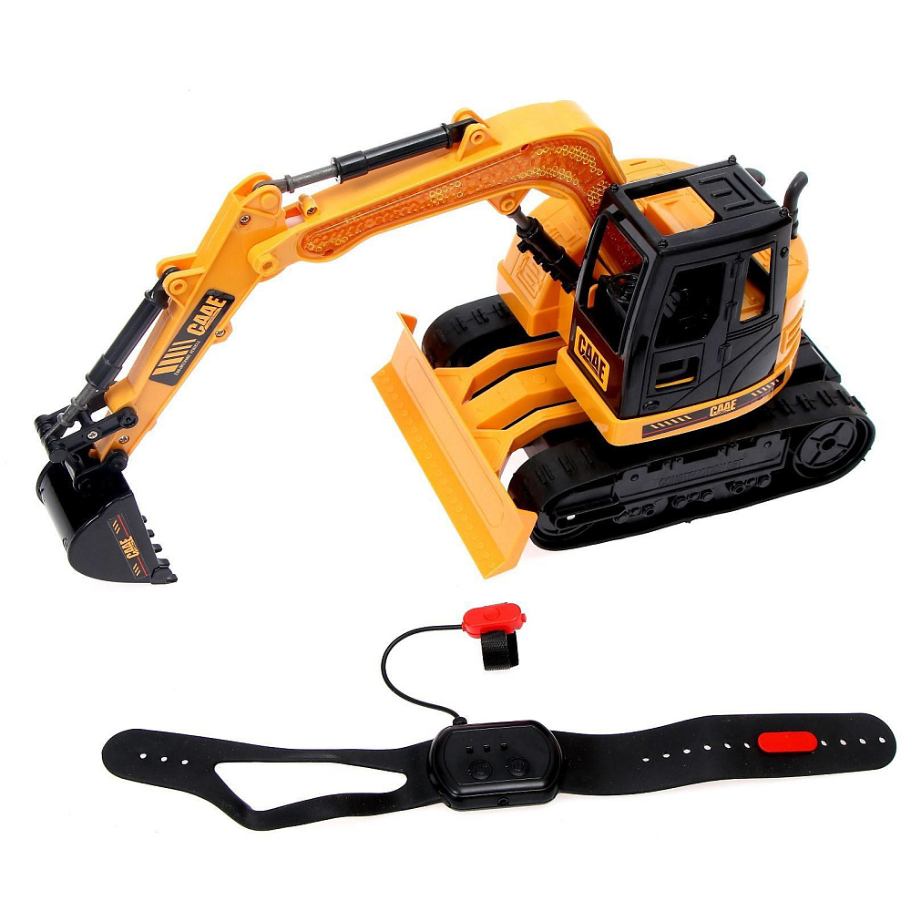 Радиоуправляемый экскаватор RuiCheng CAAE масштаб 1:20 (пульт часы 2.4G) - RUI-9303A - это недорогая и качественная модель. Но главная особенность заключается в управлении. Данной машинкой можно управлять жестами при помощи специального браслета, который входит в комплект с экскаватором.