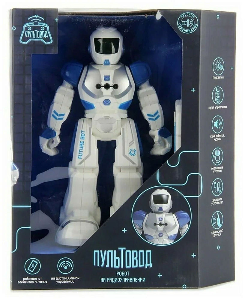 Радиоуправляемый интерактивный робот 26 см - ZYA-A2746-BLUE - это потрясающий многофункциональный радиоуправляемый робот Future Bot может ходить, танцевать и запоминать до 50 команд. Оснащен сенсорным датчиком. Игрушка полностью русифицирована и имеет обширный словарный запас. Встроенный аккумулятор заряжается по USB кабелю от компьютера. Робот качественный и произведен из безопасных материалов