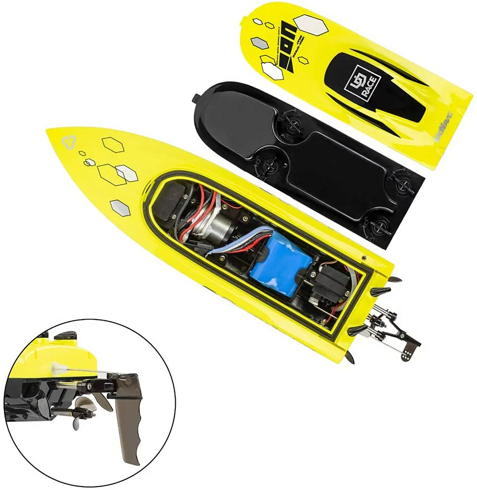 Отличительной и несомненно удобной особенностью модели является - механизм переворота. Если ваша лодка перевернулась в воде, вдали от берега, вы можете активировать механизм переворота с помощью комбинации команд (смотрите инструкцию). Теперь вам не придётся плыть за обездвиженной лодкой.