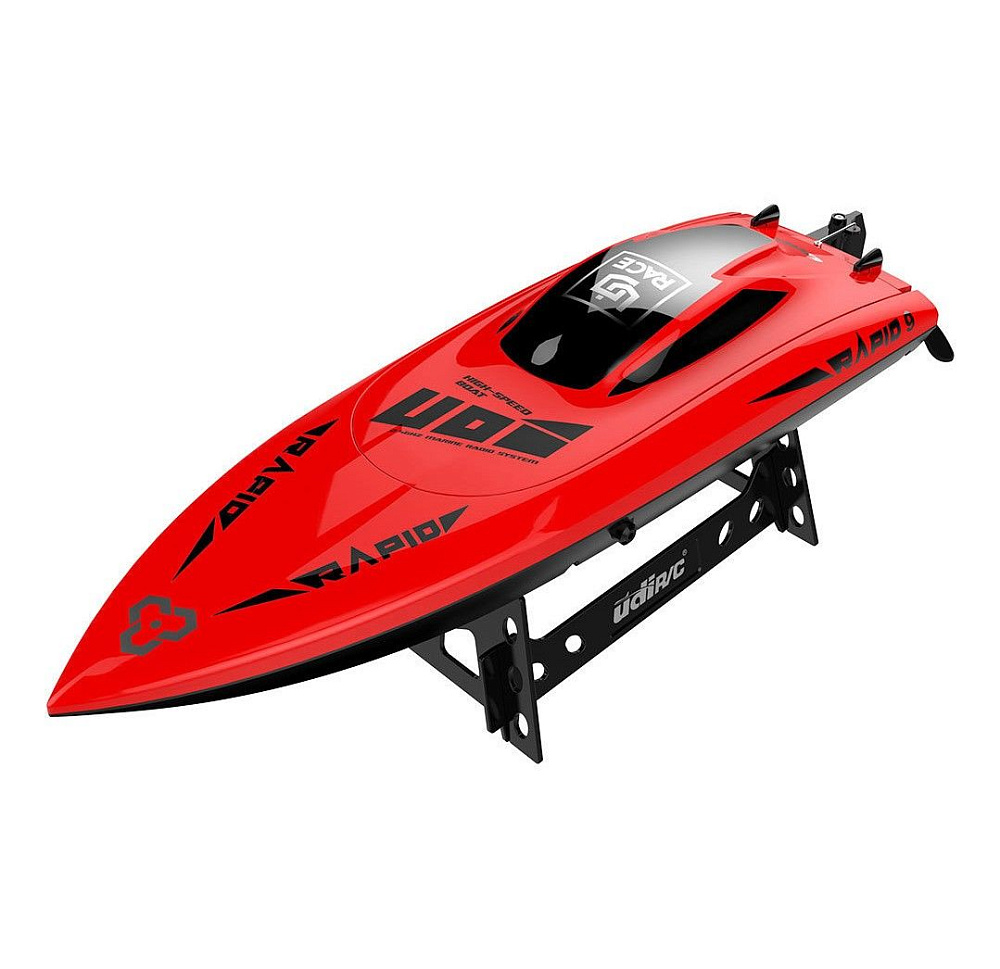 Радиоуправляемый катер UdiRC Rapid (42 см, автопереворот, 2.4G) - UDI009 - это радиоуправляемый спортивный катер Rapid UDI009 от производитель UdiRC. В комплект входит подставка для хранения, выполненная из пластика с текстурой под дерево. Пульт управления пистолетного типа удобно лежит в руке и взрослого, и ребенка. Рулевое колесо имеет плавный ход, покрыто нескользящим, мягким и приятным на ощупь прорезиненным материалом. На пульте есть все необходимые триммеры для точной настройки.