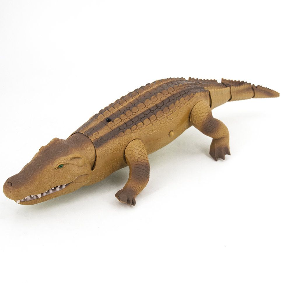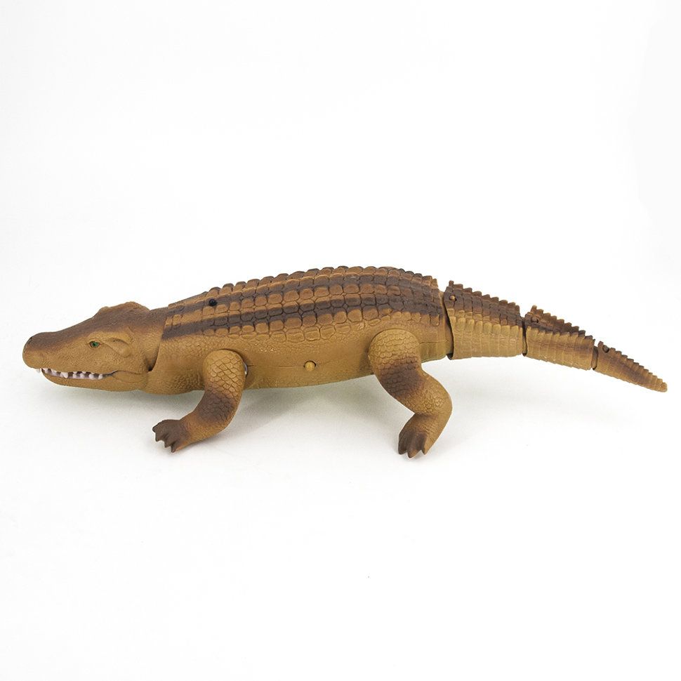 Игрушка радиоуправляемая «Крокодил» - оригинальная игрушка, которая обязательно понравится малышу, увлеченному удивительными существами - крокодилами. Этот игрушечный зверь может медленно передвигаться вперед и назад, исследовать окружающую его обстановку. Он также широко открывает пасть, грозно рычит и шевелит хвостом. Управление этим диковинным существом осуществляется при помощи специального пульта ДУ, который выполнен в виде большой окаменелости. Главным достоинством этой игрушки является ее удивительная реалистичность. Даже самые мелкие детали качественно прорисованы. Игрушка также оснащена световыми эффектами.