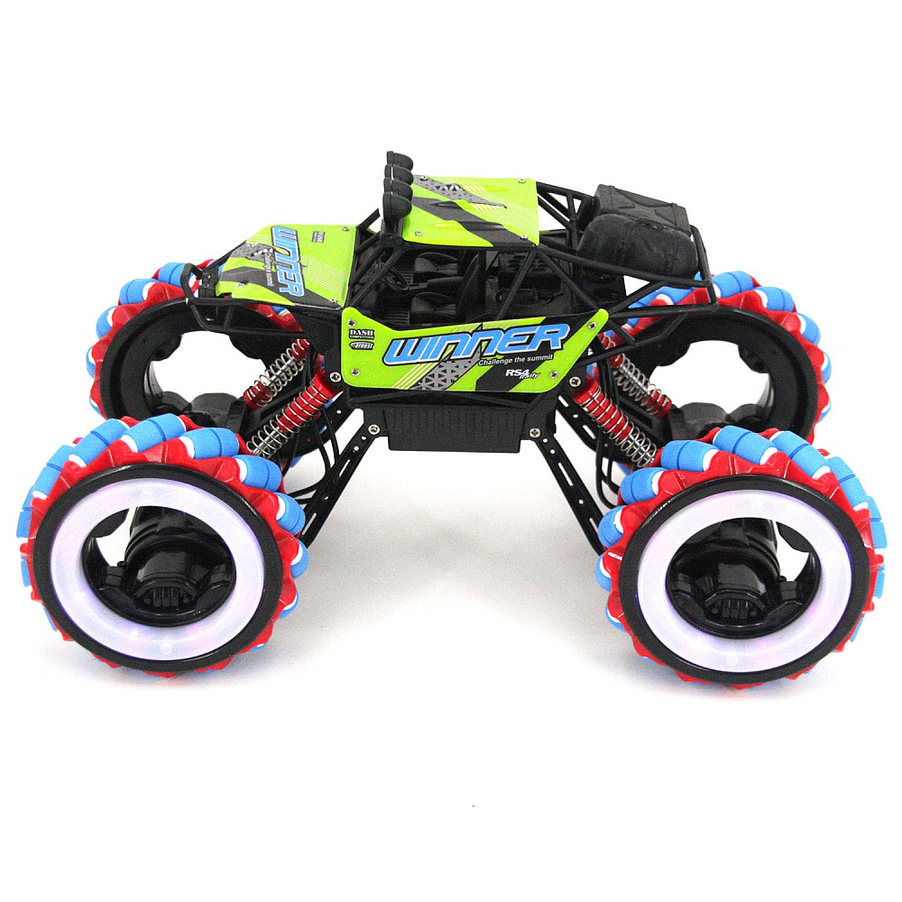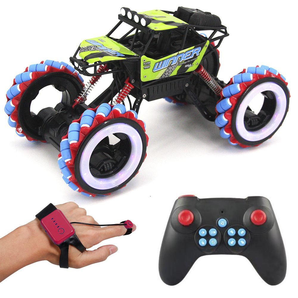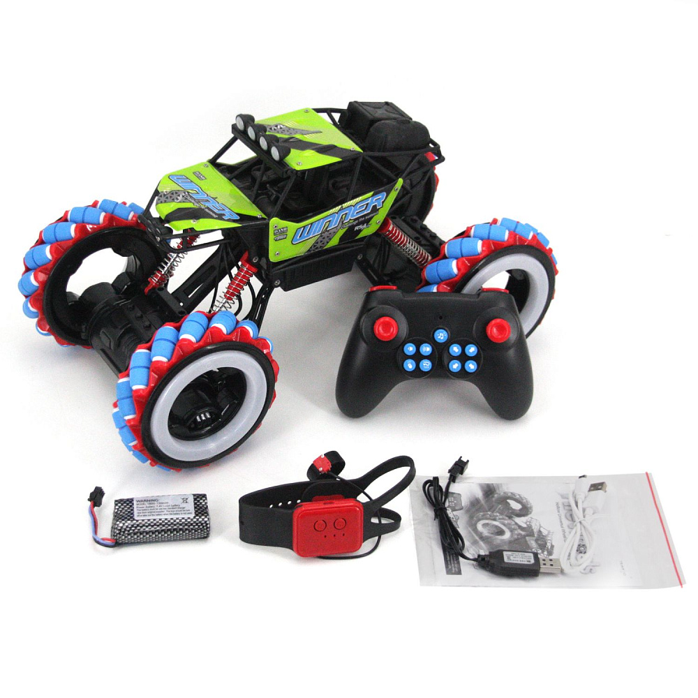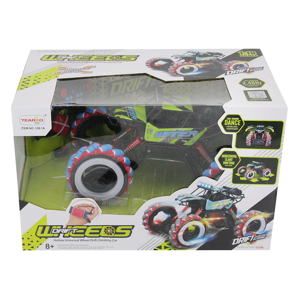 Радиоуправляемый краулер для дрифта Yearoo (часы + пульт) 1:10 - 339-1A-GREEN - это машинка краулер Winner Drift Wheels, которая является несомненным хитом продаж среди радиоуправляемых моделей. О такой машинке мечтает каждый мальчик. Возможности машинки Winner Drift Wheels просто невероятны. Она может ездить, крутиться на месте и ехать дальше, приподниматься и даже танцевать. Но главная особенность заключается в управлении и уникальных колесах с яркой светодиодной подсветкой. Данной машинкой можно управлять жестами при помощи специального браслета, который входит в комплект с машинкой Winner Drift Wheels. Увлекательный процесс управления понравится не только детям, но и взрослым. И все это будет сопровождаться звуками работающего мотора, яркой подсветкой колес и песнями. Особенно эффектно машинка смотрится в темноте.