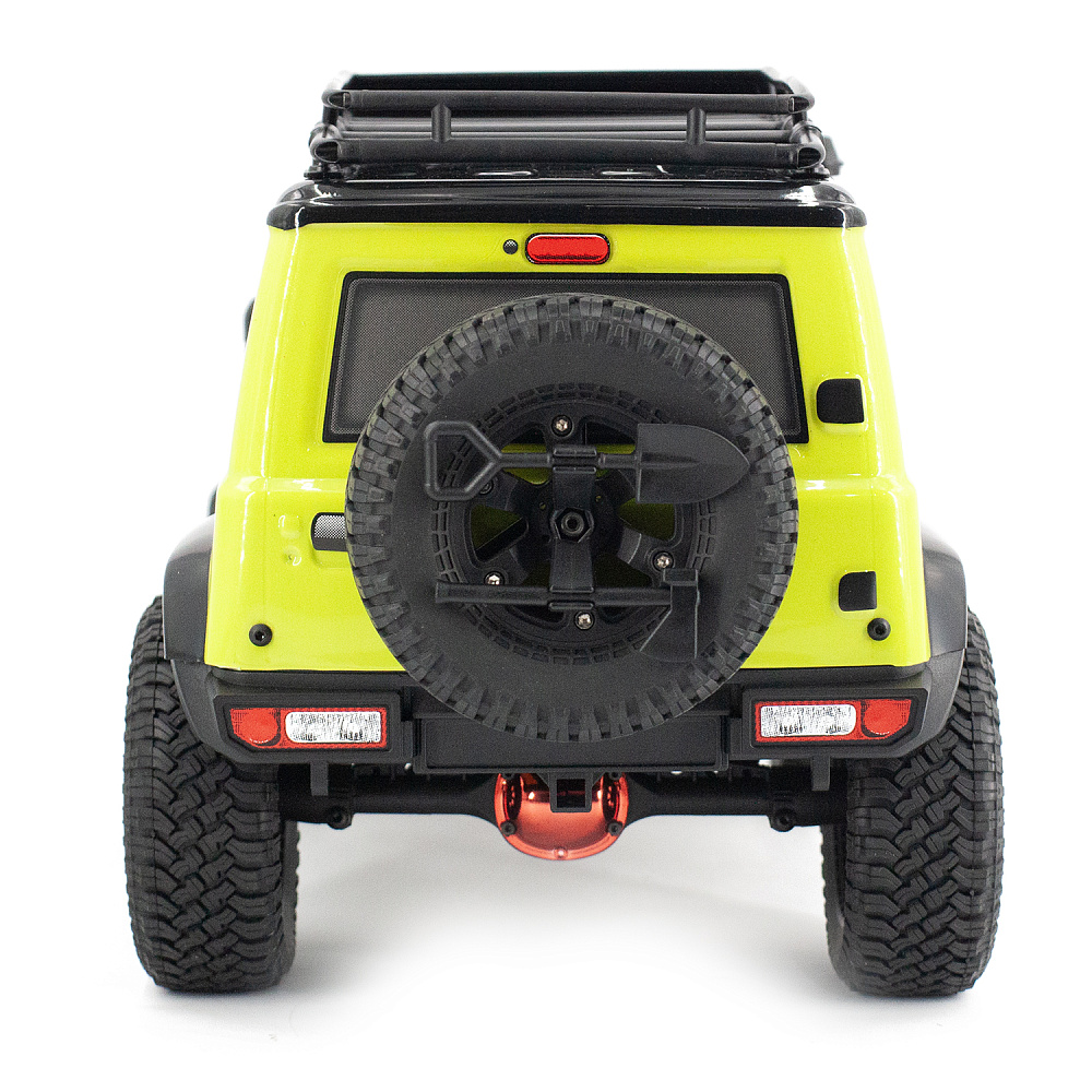 Модель 136100 V3 поставляется с колесами гораздо более высокого качества. Они представляют собой конструкцию с бортами размером 1,9 дюйма с 6 винтами по внешней стороне, которые удерживают их на борте шины. Колеса пластиковые, но они привлекательны и достаточно прочны, как с точки зрения сохранения формы, так и с точки зрения безопасности борта. Шины имеют масштабный вездеходный протектор, а резина липкая и податливая на камнях. Пены соответствуют весу автомобиля и действительно украшают машину. Сзади имеется функциональное запасное колесо.