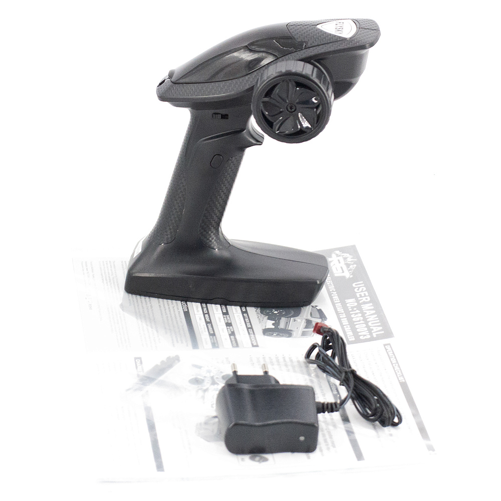 Этот краулер поставляется в комплекте с пультом управления на частоте 2.4 ГГц, который обеспечивает стабильное и надежное радиоуправление, для которого нужны 4 батарейки типа АА — их нужно приобрести самостоятельно, но это единственное, что вам нужно добавить, чтобы он заработал. Есть инструкция, которая разворачивается в большой лист бумаги. С одной стороны он содержит схемы деталей в разобранном виде, а с другой — инструкции по использованию радиосистемы и системы освещения.