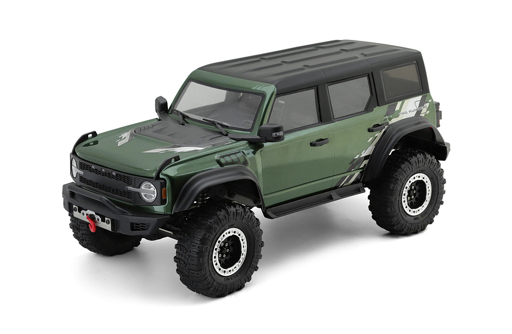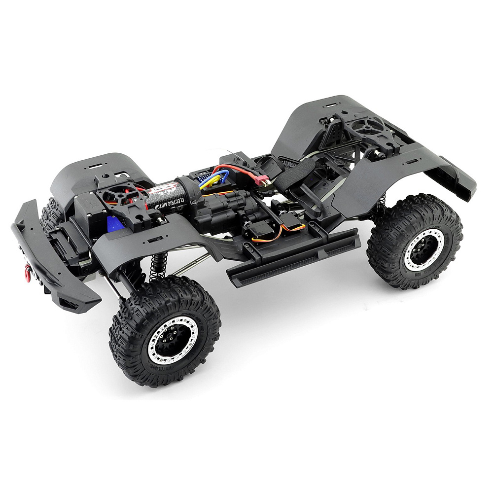 Модель имеет портальные мосты, двухскоростную коробку передач, 4WD, функцию блокировки задней оси и свободно переключаемый передний привод, режим разных скоростей между передним и задним приводом для восхождения. Pro Runner оснащен на заводе лебедкой с функцией разблокировки, задний мост в корпусе для поперечной устойчивости, светодиоды, 6-канальный передатчик, двигателем с очень плавным ходом.