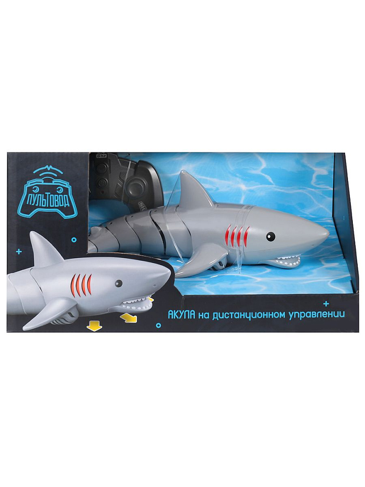 Радиоуправляемый робот Акула плавает в воде - ZYB-B3540 - это реалистичная игрушка, которая действительно умеет плавать: делает развороты влево и вправо, движения вперед и назад, а также двигает туловищем и хвостовым плавником.
