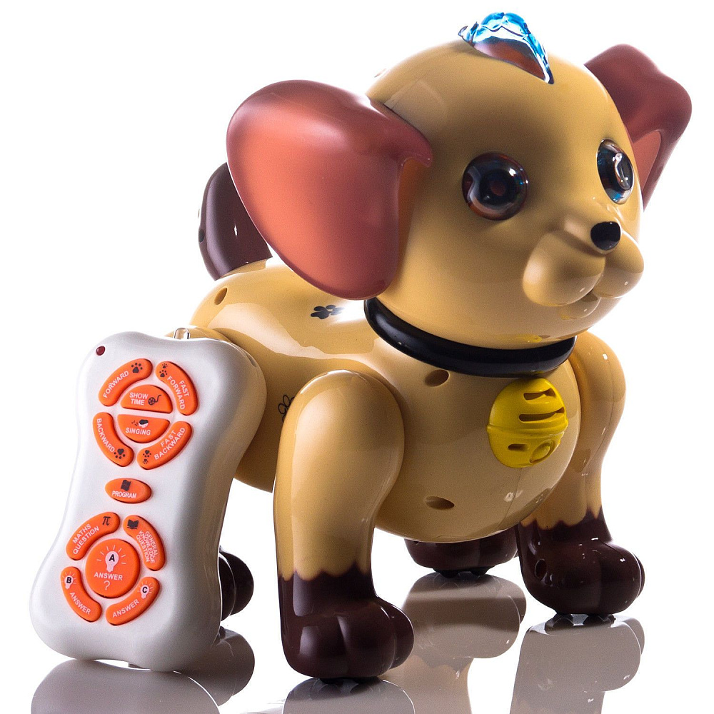 Радиоуправляемый робот собачка Умный Я (коричневый) - ZYA-A2744-1 - это интерактивная игрушка из серии "Умный Я". РОбот может выполнять движения вперед/назад, подсветка глаз. Работает от дистанционного пульта управления. Имеет множество обучающих режимов и задает много интересных, интерактивных вопросов. Умеет танцевать и петь песни.