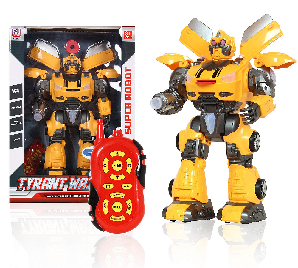 Радиоуправляемый робот трансформер, стреляет дисками - 6021 - это очень интересная игрушка для мальчиков. Робот-трансформер яркий и эффектный внешне, он умеет ходить и танцевать, стрелять дисками и воспроизводить звук, а также имеет встроенные световые эффекты. Высота робота 38 см.