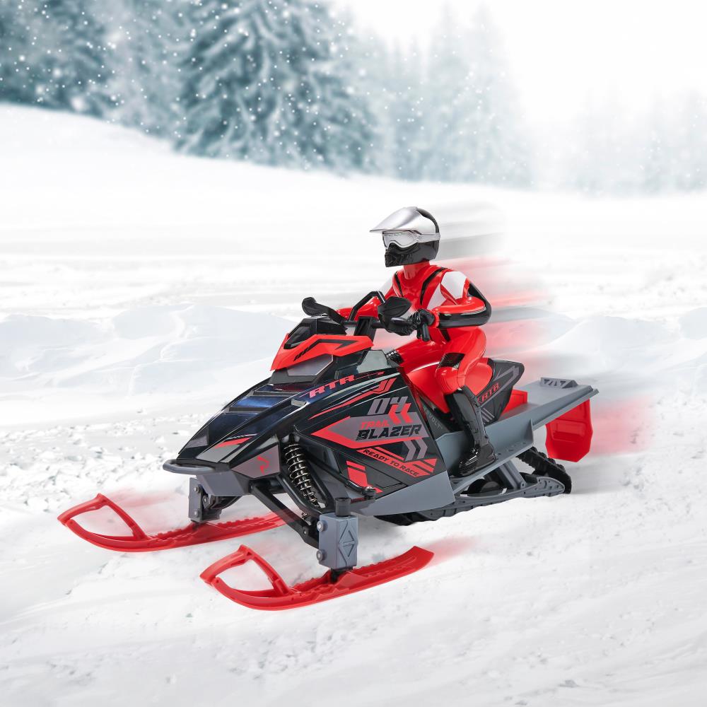 Радиоуправляемый снегоход SYMA 1:6 - TG1016-RED - это большой радиоуправляемый снегоход Syma TG1016, который можно запускать как в помещении, так и на улице, ведь он способен ездить по настоящему снегу! Две передние лыжи можно менять на лыжи с колесиками, что позволяет адаптировать снегоход для езды по твердой поверхности. Эта прочная модель с дистанционным управлением выполнена в масштабе 1:6, имеет фигурку водителя, и оснащена мощным электромотором. Передние заменяемые лыжи оснащены рабочей подвеской, а в качестве движителя используется широкая резиновая гусеница. Литиевая аккумуляторная батарея 7.4В/1200мАч позволяет разгоняется до скорости 8 километров в час и гонять в течении 20 минут, а светящиеся фары обеспечивают возможность кататься даже вечером.
