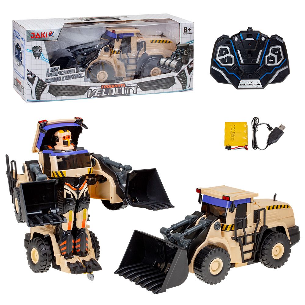 Радиоуправляемый трансформер JiaQi (бульдозер - робот) - TT675 - это увлекательный трансформер трактор на радиоуправлении, который при помощи пульта управления производит трансформацию из трактора в робота и обратно. Игрушка как в форме робота, так и в виде трактора может передвигаться во всех направлениях, при движении воспроизводит звуки и имеет подсветку. Вашему ребенку определенно понравится игра в настоящего трансформера, который еще и управляется с пульта и автоматически перетрансформируется.