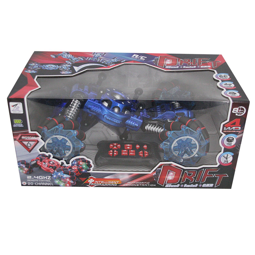 Радиоуправляемый трюковый синий дрифт Твистер Zegan 1:10 - ZG-C1253 - это полноприводная машинка перевертыш "ZeGan" c 6-ю ударопрочными моторами и двойной защитой. Большой размер, масштаб 1:10. У машинки есть уникальная возможностью управлять передними и задними колесами независимо друг от друга, поворачивая их вверх и вниз и совершая головокружительные трюки. Машинка двигается во все стороны и даже боком. Она может легко трансформироваться из джипа в гоночную машину и обратно прямо с пульта управления, поднимая шасси для преодоления всех видов препятствий. Необычные световые эффекты колес сделают игру еще более увлекательной. У перевертыша есть музыкальное сопровождение с возможностью регулировки громкости. Мощный Li-ion аккумулятор 1200 mAh, позволяет играть на одном заряде 25-30 минут.