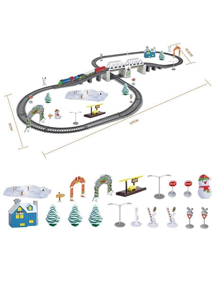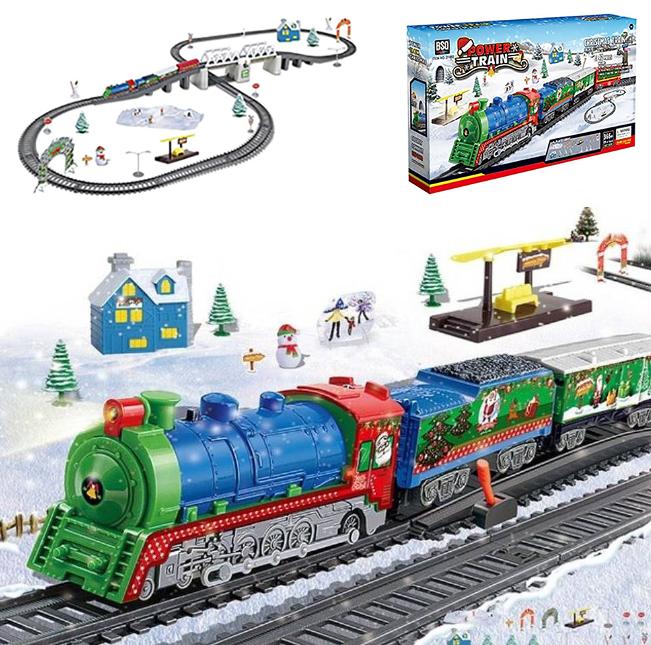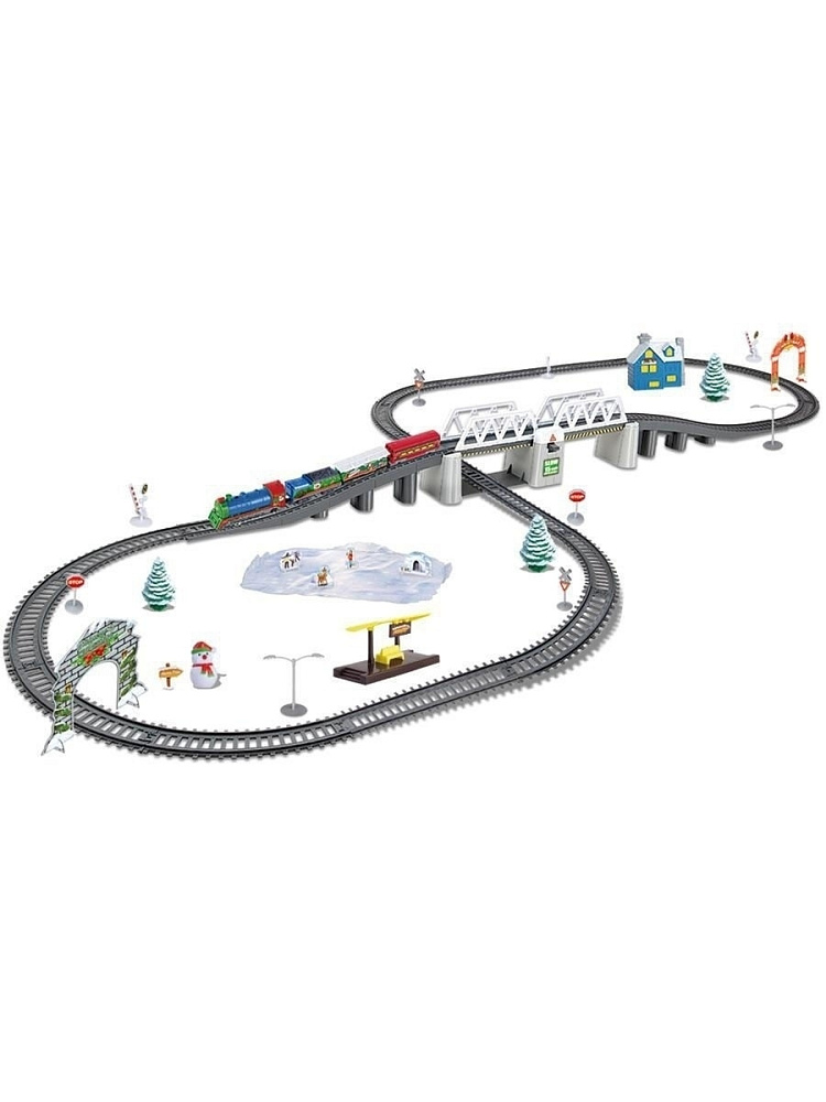 Железная дорога BSQ Новогодний Экспресс 366 см - BSQ-21812 - это тематическая Железная дорога Новогодний экспресс, которая воссоздаст атмосферу праздника и поможет отправиться в путешествие по неизведанным дорогам на встречу к чудесам. Состав везет подарки детям под Новогоднюю музыку, преодолевая заснеженный лес (декорации). А также делает остановку у домика Деда мороза.