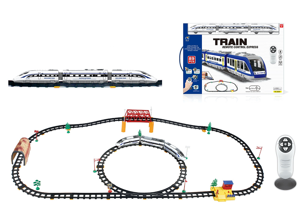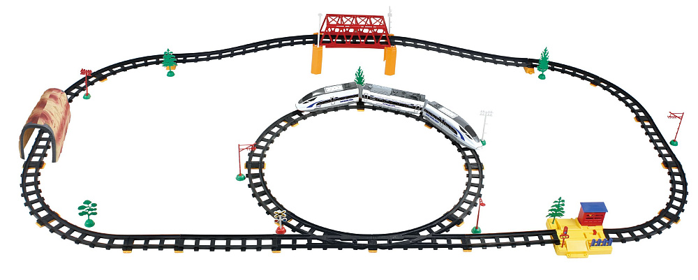 Железная дорога с пультом управления (поезд Сапсан, длина полотна 618 см, свет, звук) - 2808Y-2 представляет собой целый игрушечный комплекс, способный заинтересовать ребенка возможностью увлекательных реалистичных игр. Однако, перед тем, как приступить к развлечению, необходимо собрать воедино не только детали рельс, но и элементы поезда.