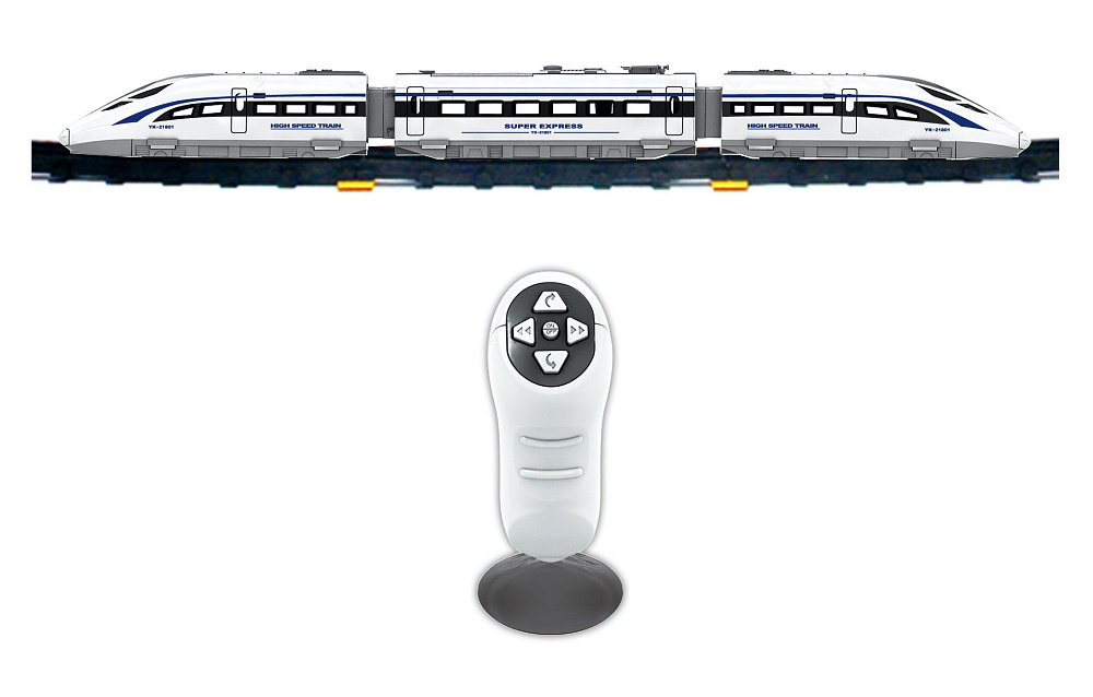 Игрушка состоит из трех вагонов и выглядит очень стильно. Ее корпус, окрашенный в белый цвет, отличается тонкой детализированной проработкой. Контролировать движение скоростного супер-экспресса можно с помощью специального пульта управления. Во время игры можно включать специальные световые и звуковые эффекты.