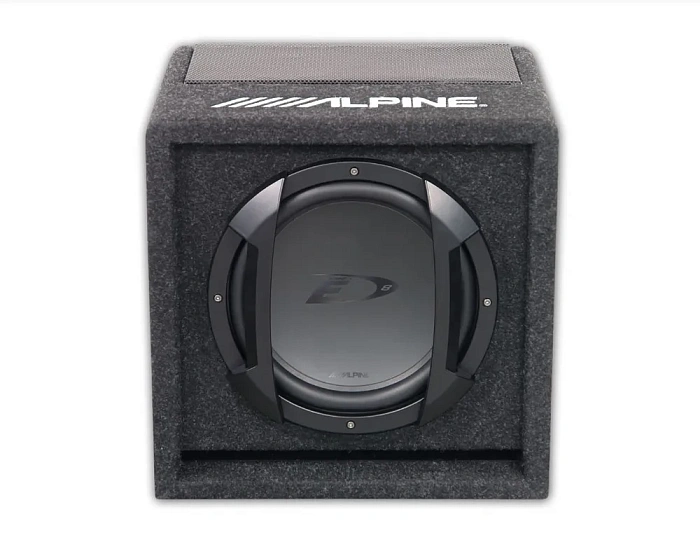 Alpine сабвуфер в машину, пассивный, корпусной фазоинверторный, типоразмер: 25 см (10 дюйм.), мощность автосабвуфера: 150 Вт, количество полос: 1, импеданс: 4 Ом
