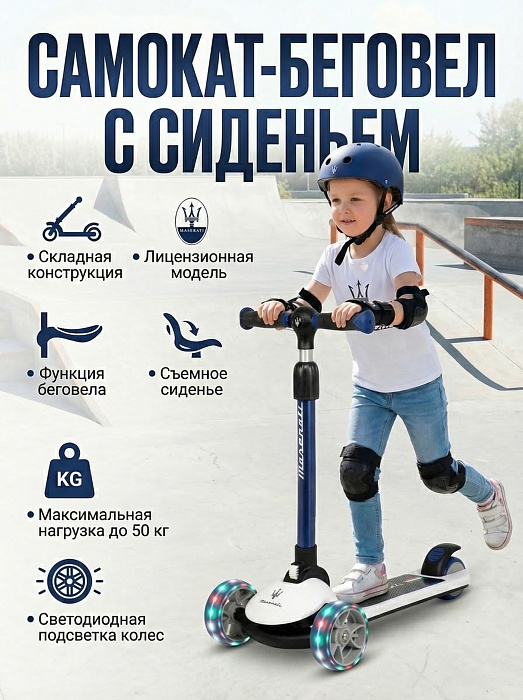 Трехколесный беговел-самокат Maserati с сиденьем - CLB-0140-BLACK