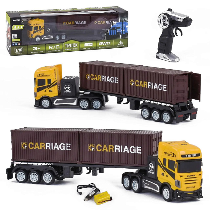 Радиоуправляемый грузовик трейлер (2WD, акб, 1:16) - GM1937-YELLOW