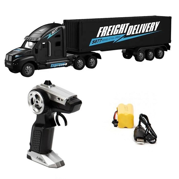 Радиоуправляемый грузовик контейнеровоз и набор дорожных знаков (2WD, акб, 1:16) - GM1918