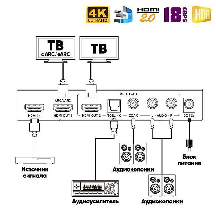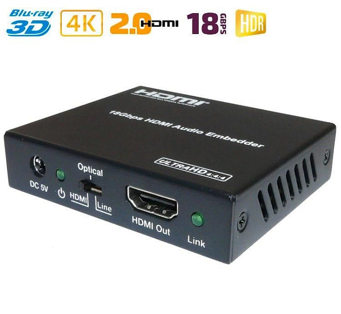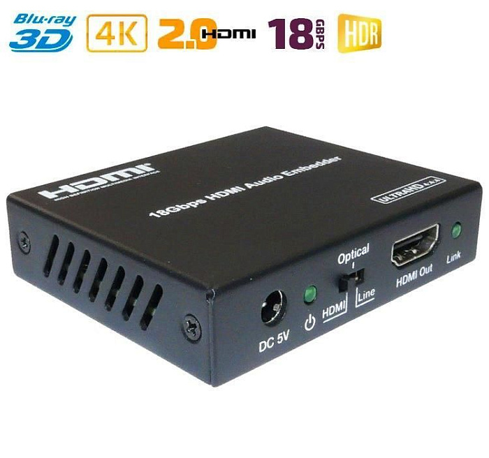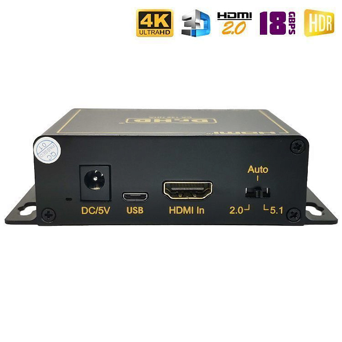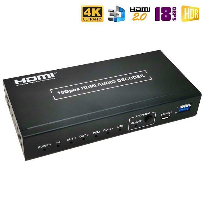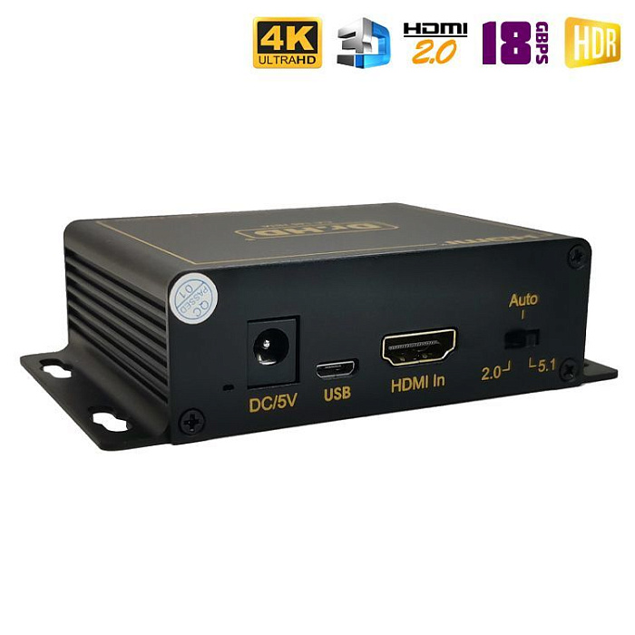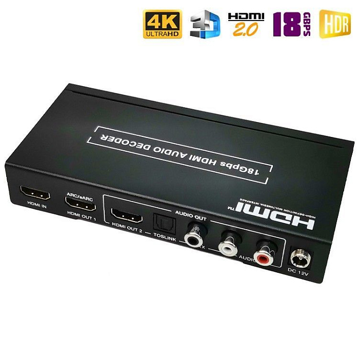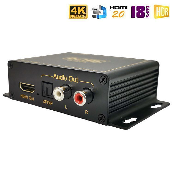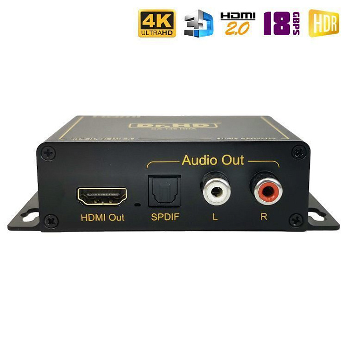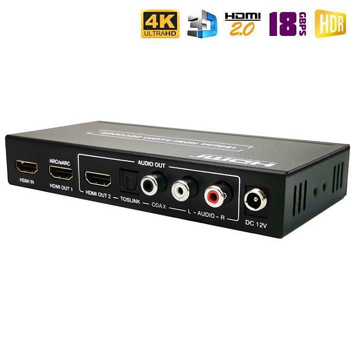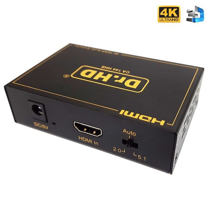 Новинка 2023 года! Аудио экстрактор Dr.HD CA 146 HHA предназначен для извлечения звука из HD-источника и вывода его на внешние аудио устройства. Берем источник видео сигнала с HDMI выходом (игровую консоль, медиаплеер и т.п.), ПК или ноутбук, картинку подаем на экран (монитор), а звук выводим на колонки, аудио ресивер или усилитель. Поддержка HDMI 2.0, 4Kx2K при 60Hz,HDCP 2.2, 18Gbps, 4:4:4, HDR и прочее.