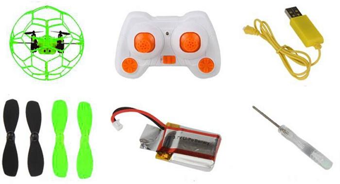 Радиоуправляемый квадрокоптер с защитной сеткой Green SkyWalker - HM1336