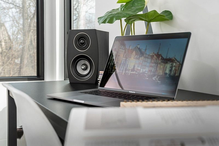 Фазоинверторного типа, двухполосная полочная АС, мощность 60 Вт, чувствительность 86 дБ, импеданс 8 Ом, диапазон частот 71-26000 Гц, материал корпуса MDF, цвет черный