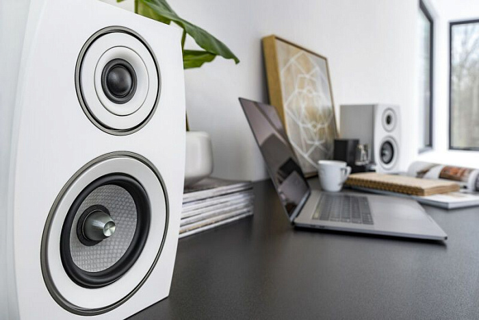 Фазоинверторного типа, двухполосная полочная АС, мощность 60 Вт, чувствительность 86 дБ, импеданс 8 Ом, диапазон частот 71-26000 Гц, материал корпуса MDF, цвет белый.