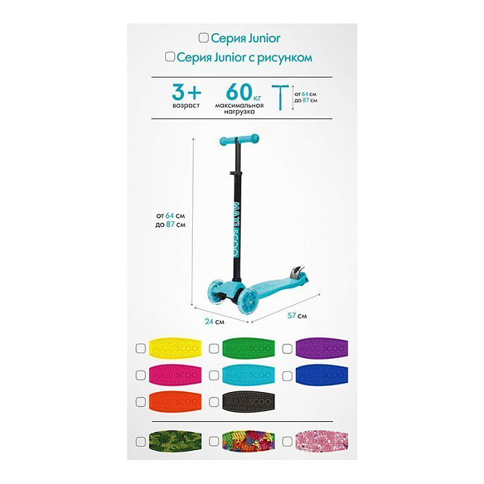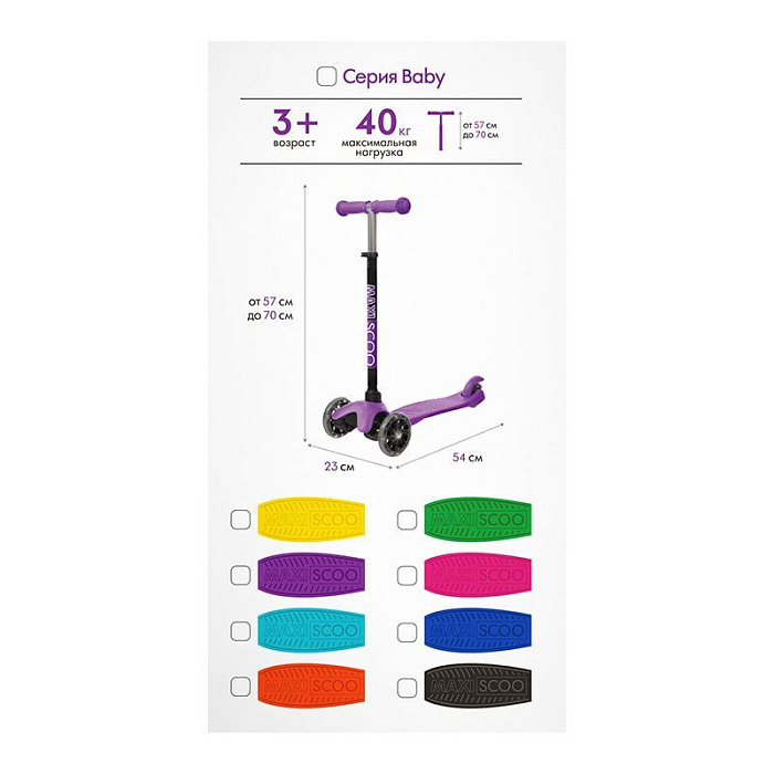 Самокат Maxiscoo Baby Трехколесный Детский со Светящимися Колесами, Голубой - MSC-B101703