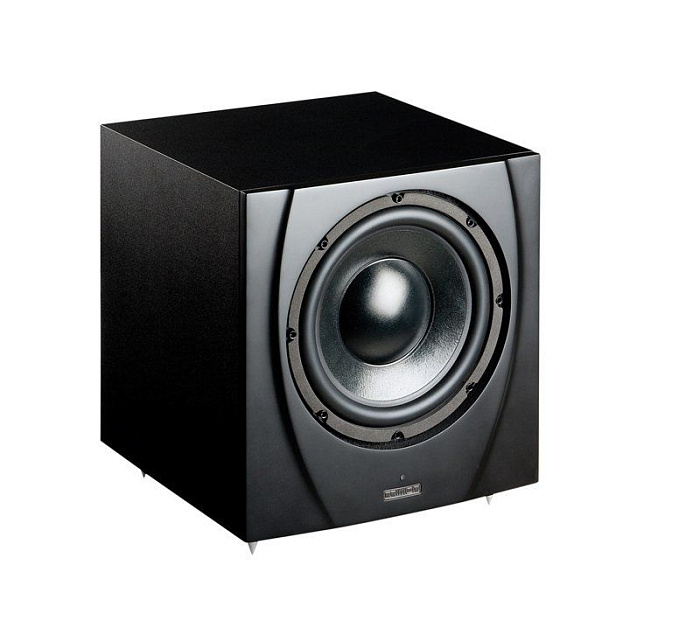 Конструкция основывается на демпфированном корпусе из толстых MDF-панелей, обладающими высокой акустической инертностью. На передней панели сабвуфера смонтирован низкочастотный динамик диаметром 8 дюймов, смонтированным на литом шасси, устойчивым к резонансам. Мощный магнит и легкая звуковая катушка большого диаметра обеспечивают перемещение диффузора динамика с большой амплитудой, а также точную отработку быстро изменяющегося звукового сигнала. Диафрагма басовика изготовлена из композитного волокна и обладает высокой жесткостью при небольшой массе.