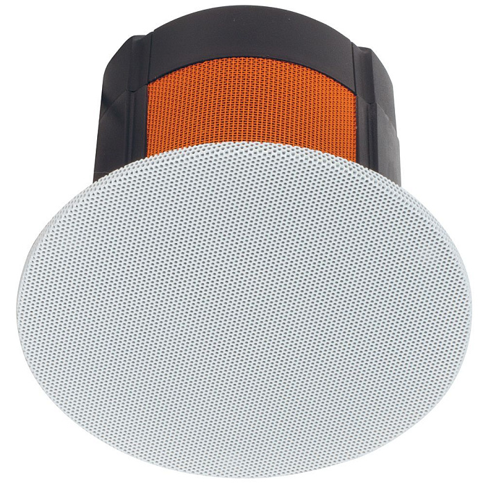 Закрытого типа, двухполосная встраиваемая АС, мощность 50 Вт, чувствительность 85 дБ, импеданс 6 Ом, диапазон частот 75-25000 Гц, материал корпуса пластик, монтаж в потолок, цвет черный.