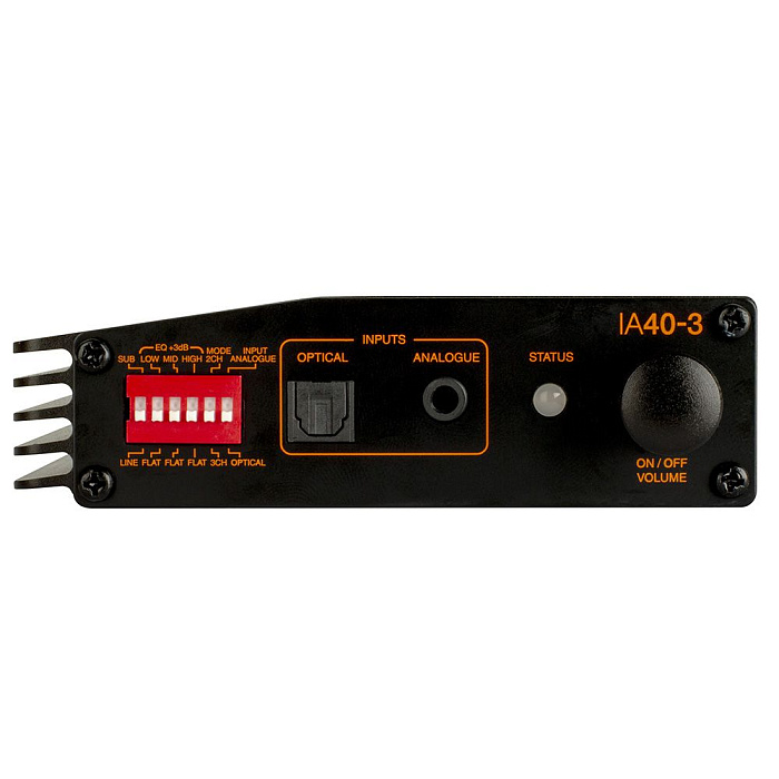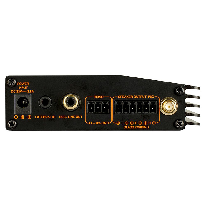 Компактный 3-канальный усилитель мощности. Сопротивление 4 или 8 Ом, максимальная мощность 60 Вт (2 канала). Частотный диапазон 10 Гц – 20 кГц, 3-полосный эквалайзер. Аналоговый и оптический входы, линейный выход. Порт RS232, возможность передачи аудио по Bluetooth. В комплекте 3 настенных крепления, адаптер питания, антенна и IR-приемник.