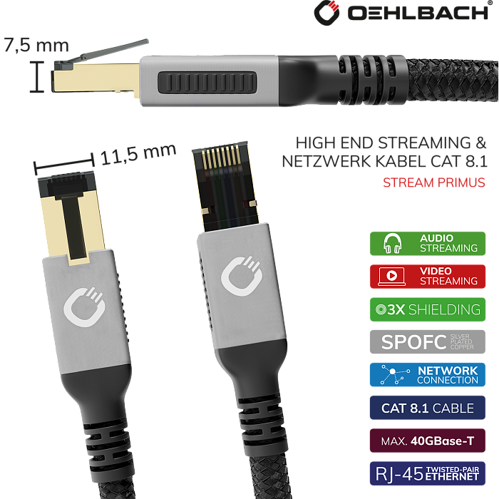 Современный сетевой кабель для самых высоких требований в играх, потоковой передаче аудио или видео, для подключения высококачественных сетевых проигрывателей HiFi, систем NAS и многого другого.