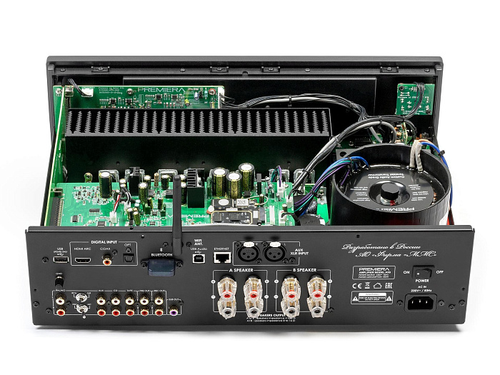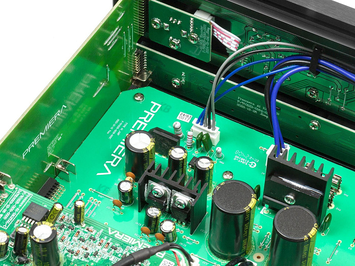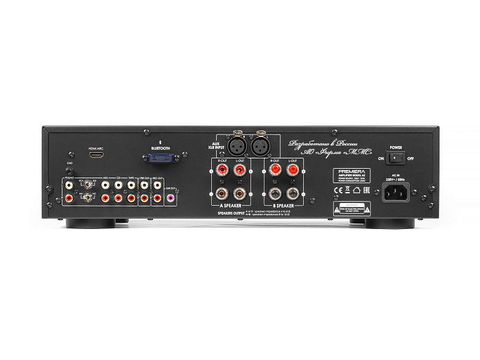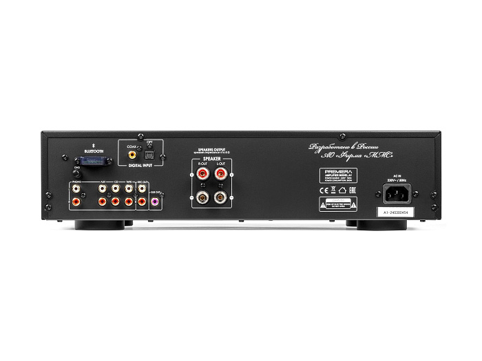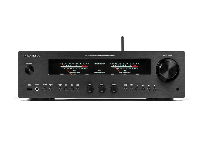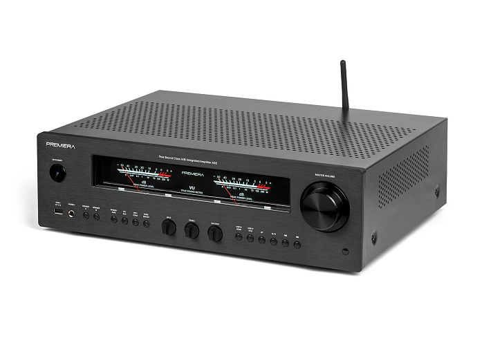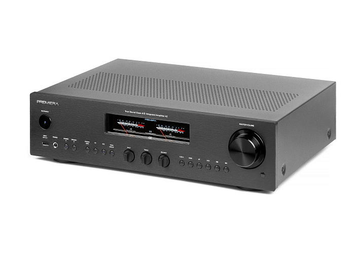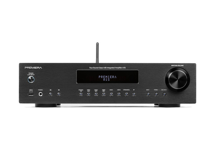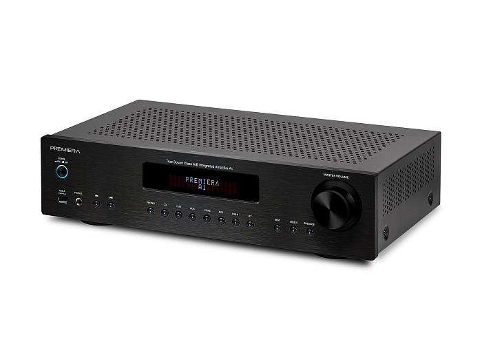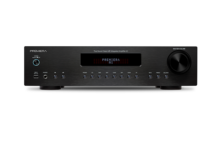 Premiera A1 – разработанный в России высококачественный интегральный Hi-Fi стереоусилитель класса AB со встроенным ММ-фонокорректором, ЦАП и Bluetooth 5.0, входами S/PDIF и Toslink, USB-A, тремя аналоговыми входами стерео линейного уровня, с номинальной выходной мощностью 51 Вт на канал (8 Ом) предназначен для использования в профессиональных и домашних стереосистемах.
