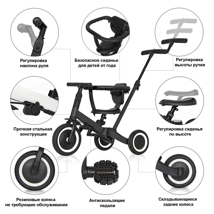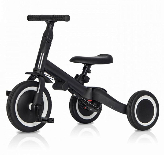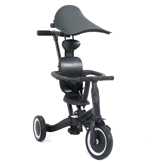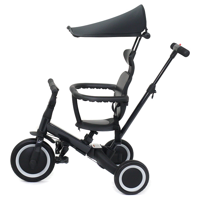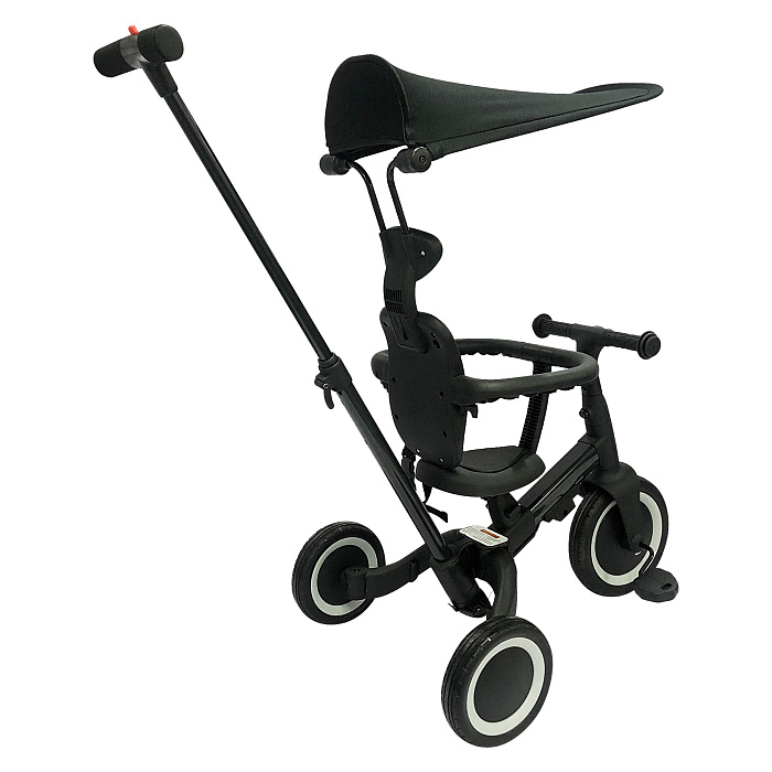 Детский беговел-велосипед 8в1 с крышей и ручкой, черный - TR010-BLACK
