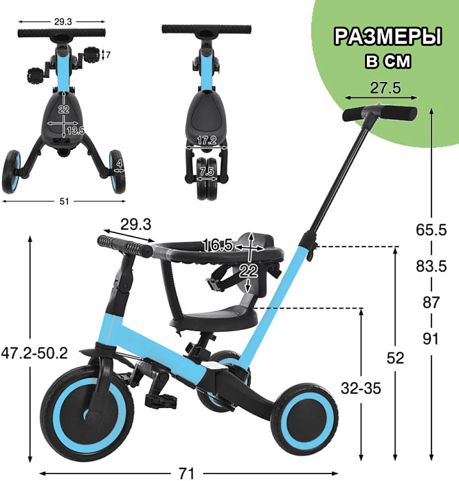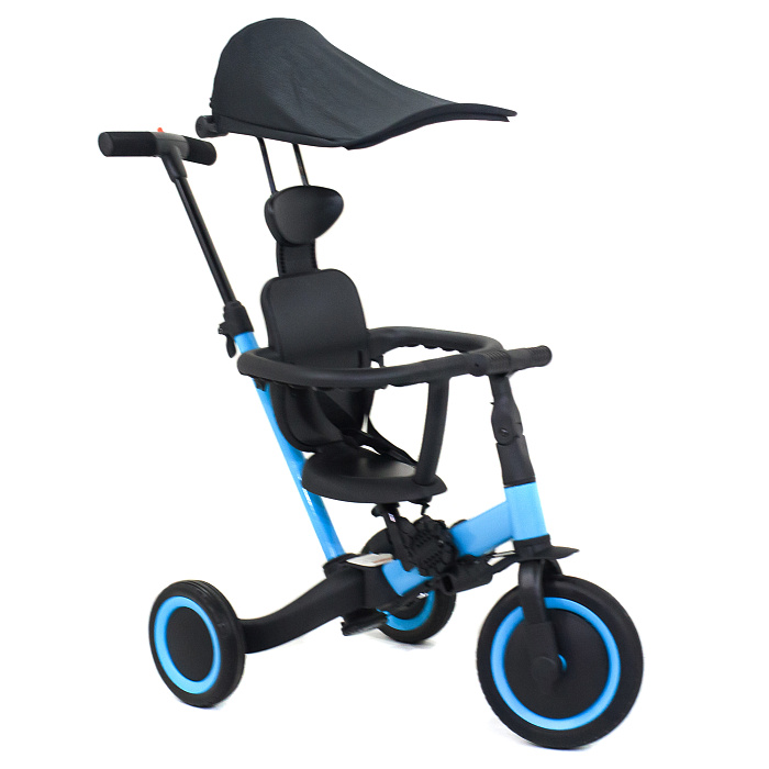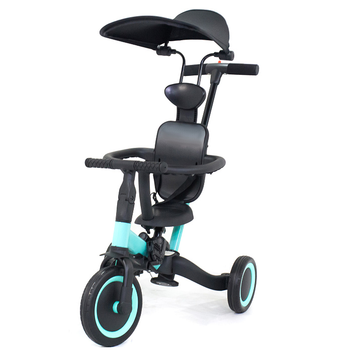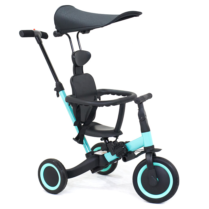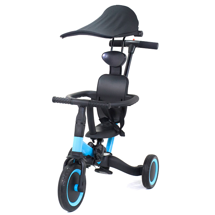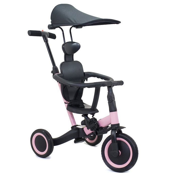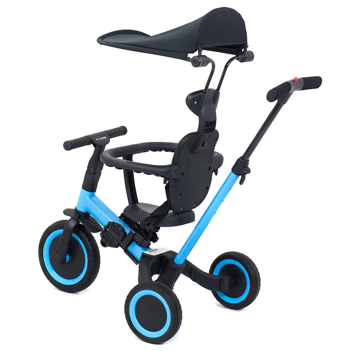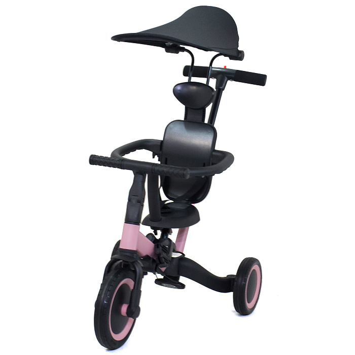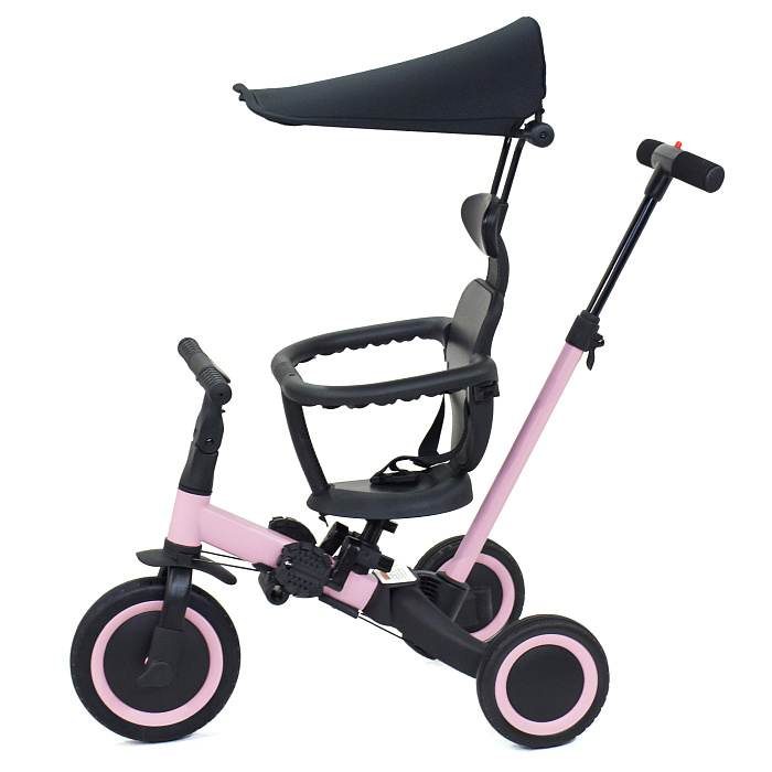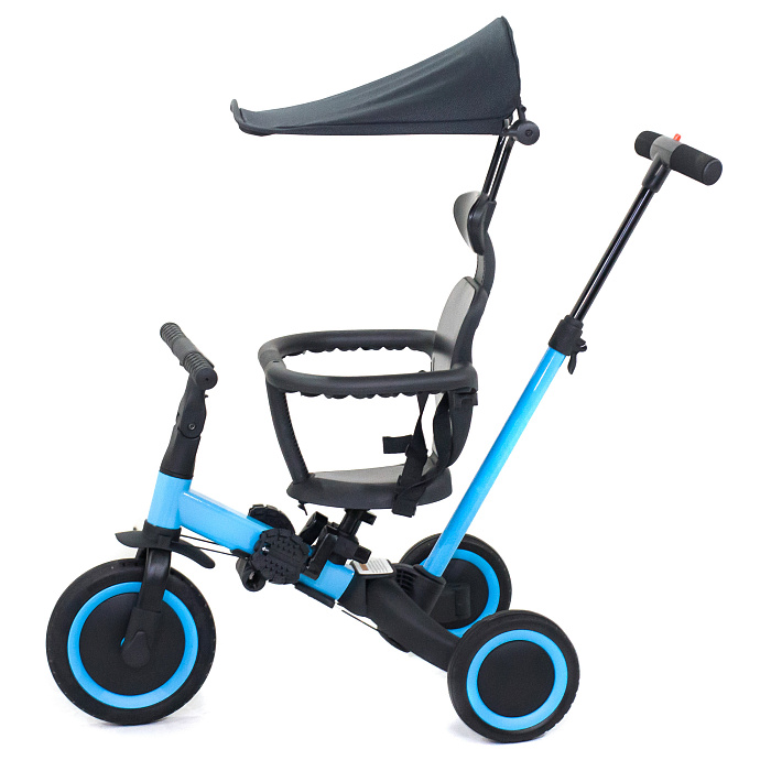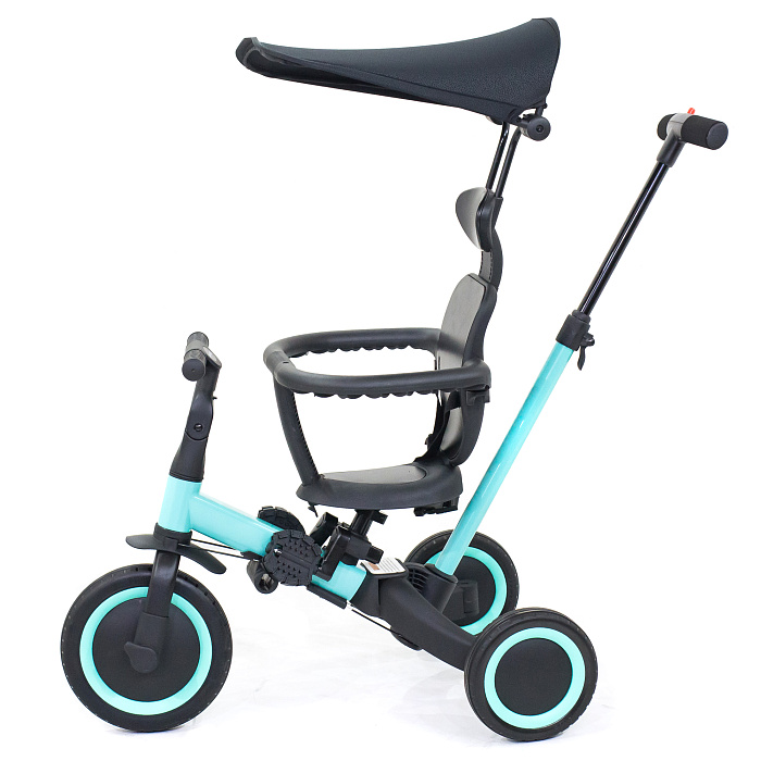 Детский беговел-велосипед 8в1 с крышей и ручкой, черный - TR010-BLACK - это обновленная модель беговела TR008 с боковой поддержкой сиденья и крышей.