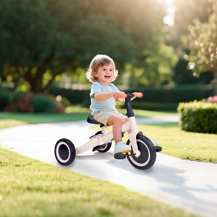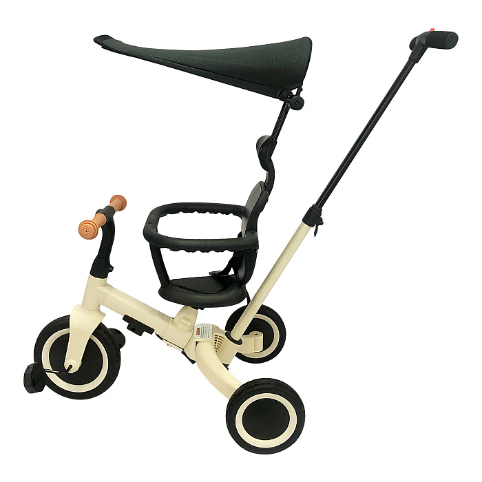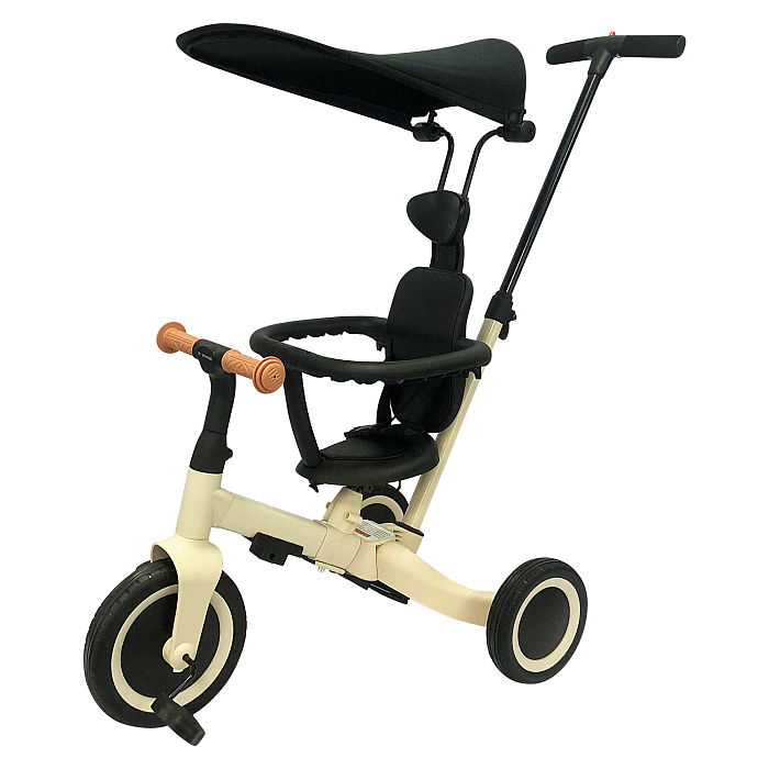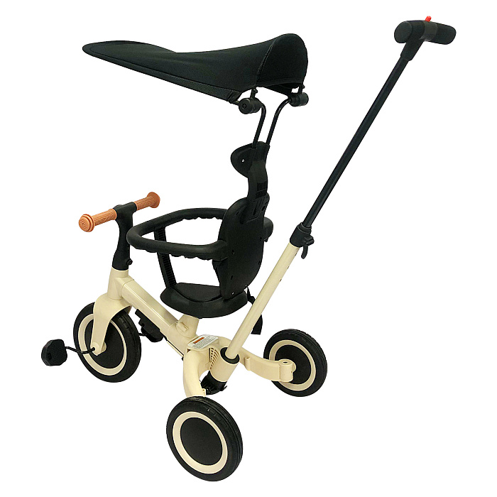 Детский беговел-велосипед 8в1 с крышей и ручкой, бежевый - TR010-BEIGE