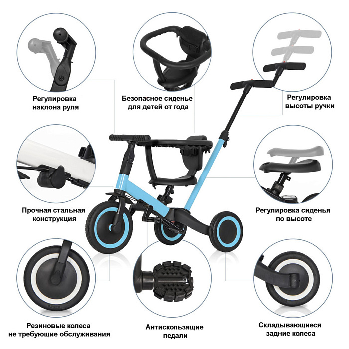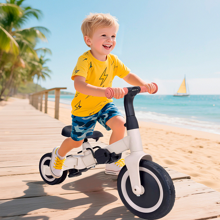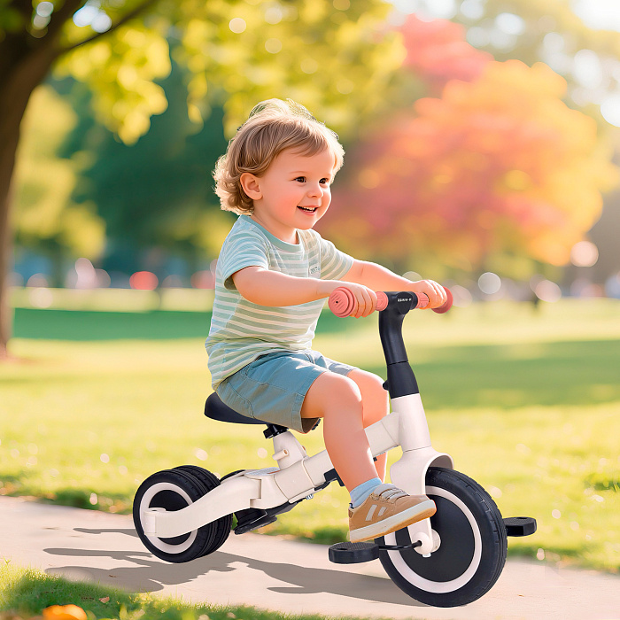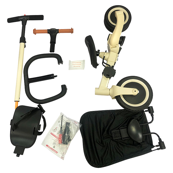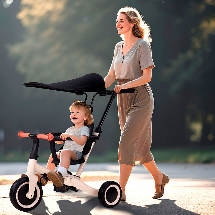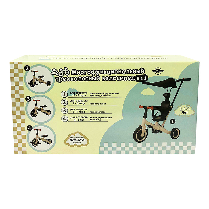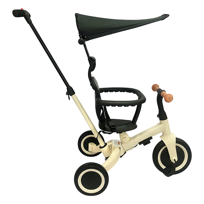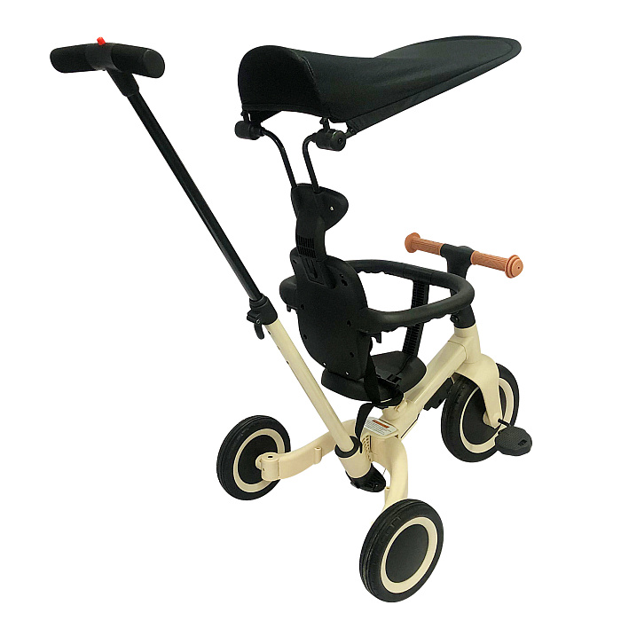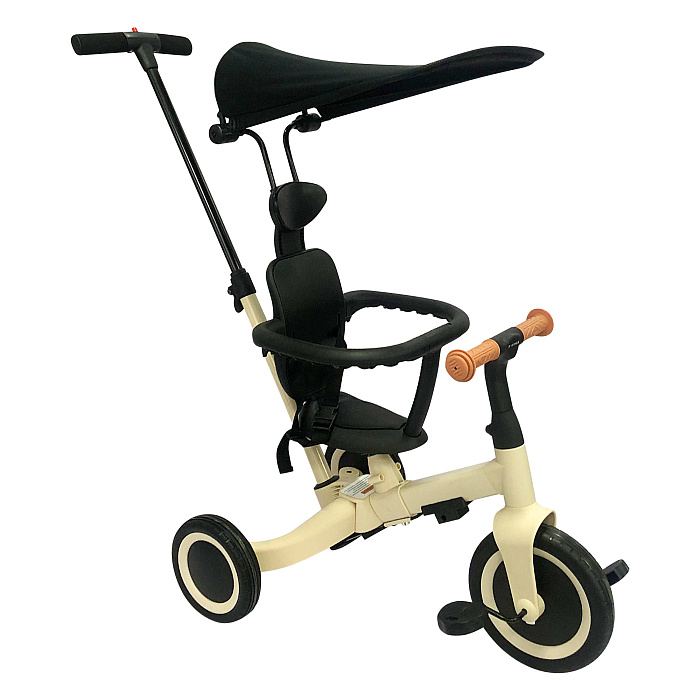 Детский беговел-велосипед 8в1 с крышей и ручкой, бежевый - TR010-BEIGE - это обновленная модель беговела TR008 с боковой поддержкой сиденья и крышей.