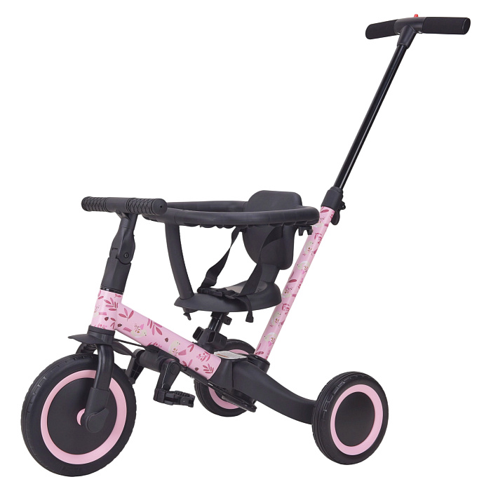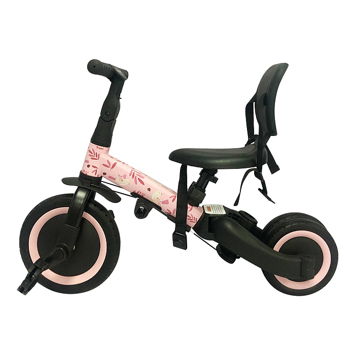Детский беговел-велосипед 6в1 с родительской ручкой, розовый с рисунком - TR008-PINK-PAINT - это обновленная модель беговела TR007 с боковой поддержкой сиденья.