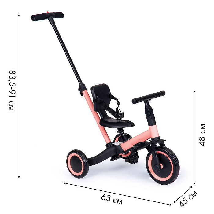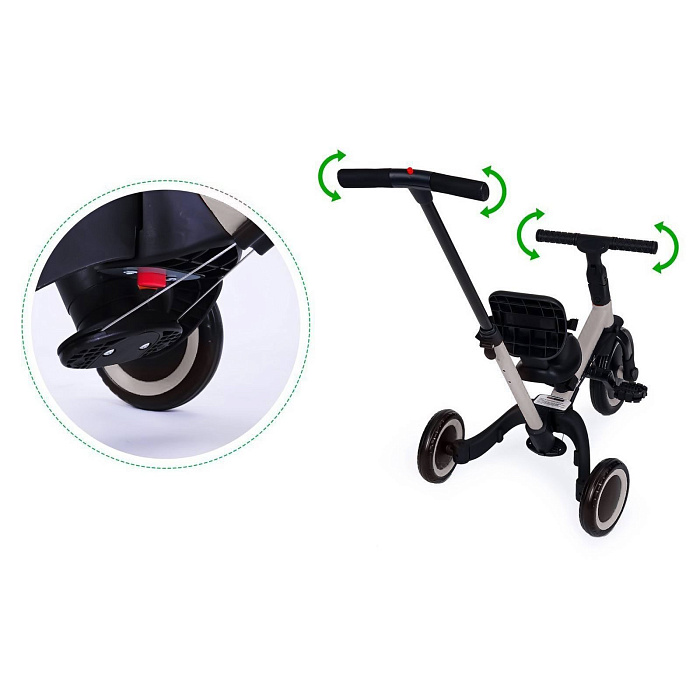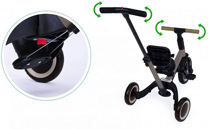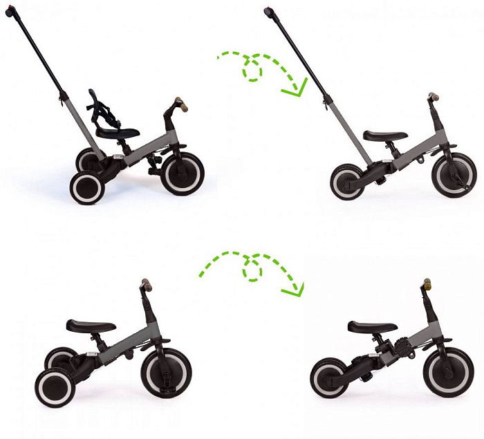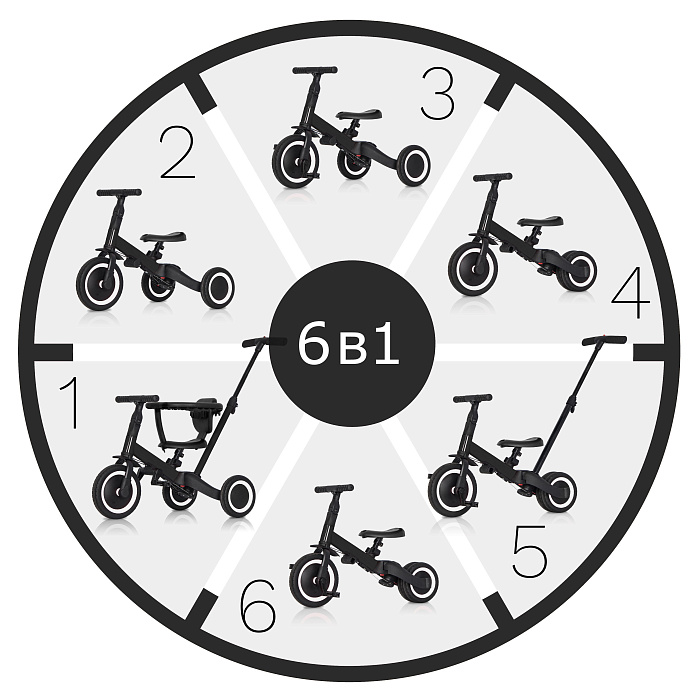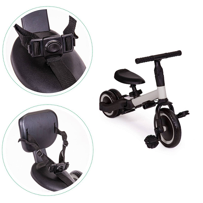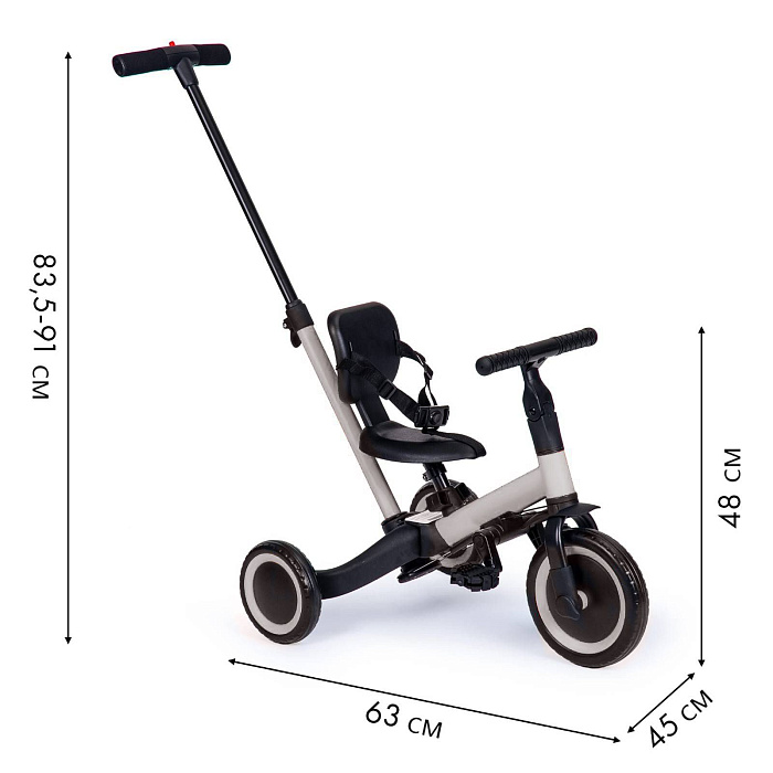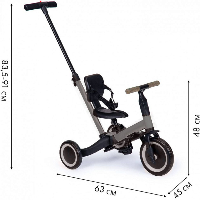Детский беговел-велосипед 6в1 с родительской ручкой, темно-серый - TR008-DARK-GREY - это обновленная модель беговела TR007 с боковой поддержкой сиденья.