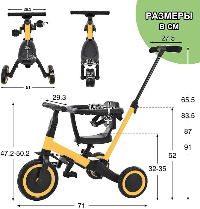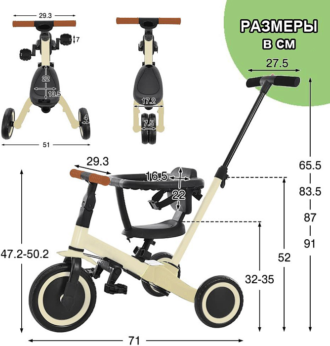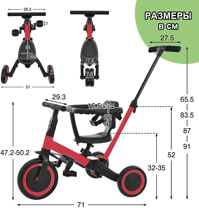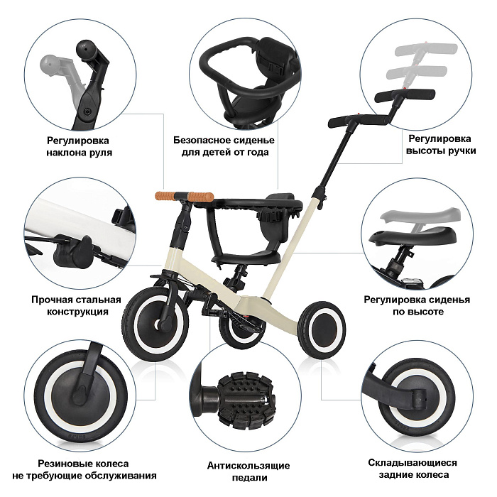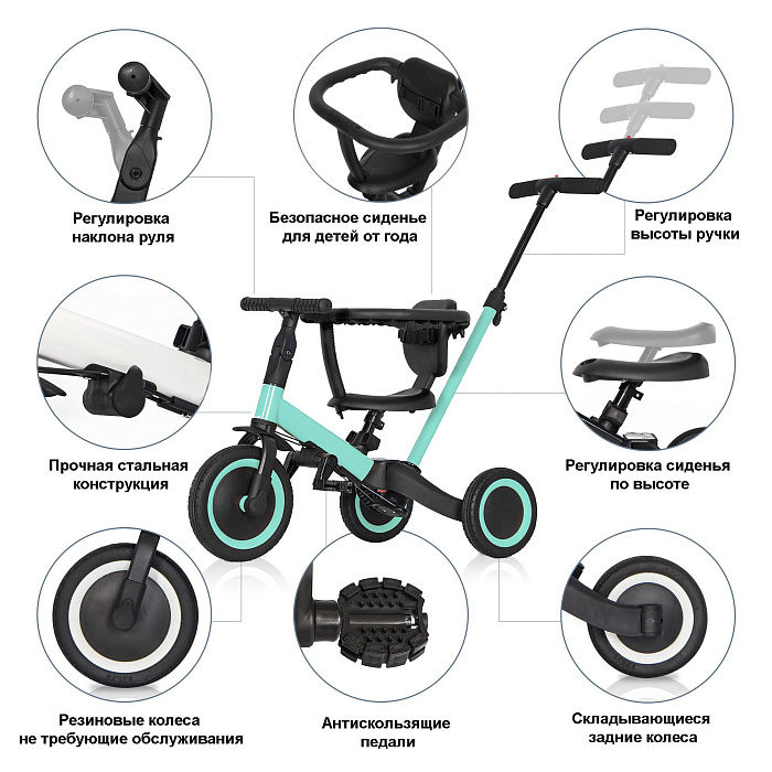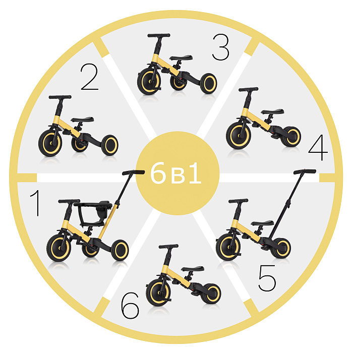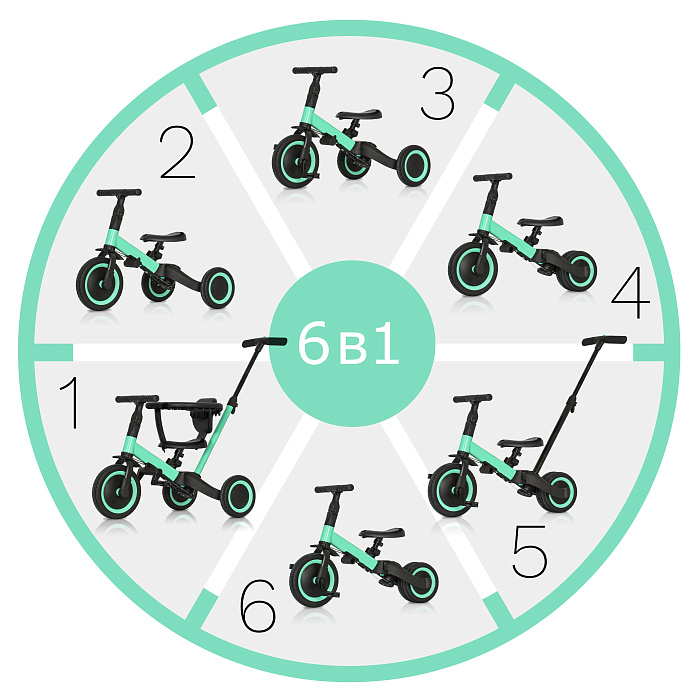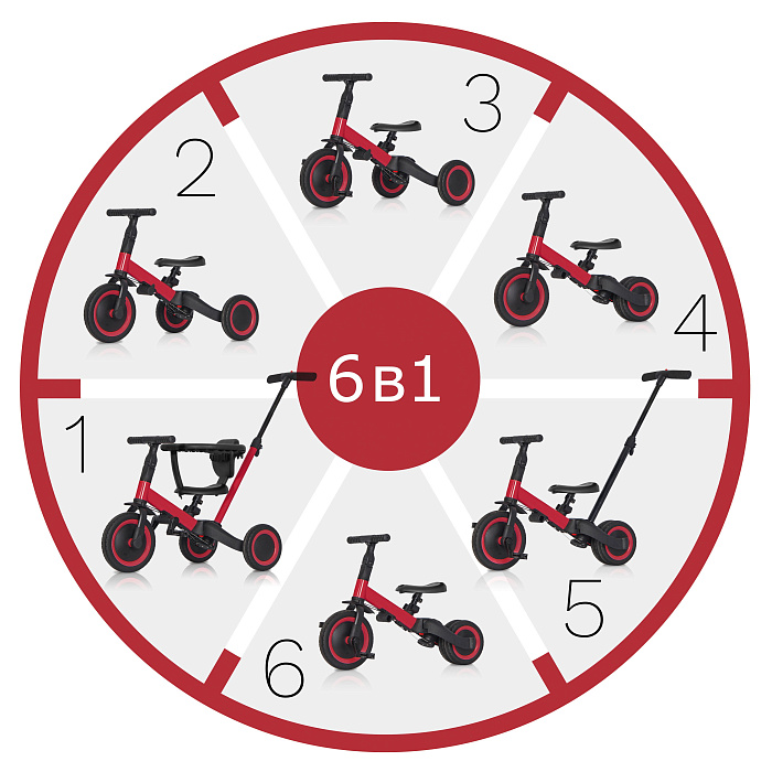 Детский беговел-велосипед 6в1 с родительской ручкой, темно-серый - TR008-DARK-GREY - это обновленная модель беговела TR007 с боковой поддержкой сиденья.