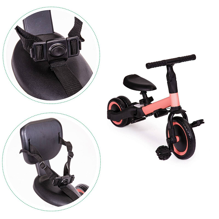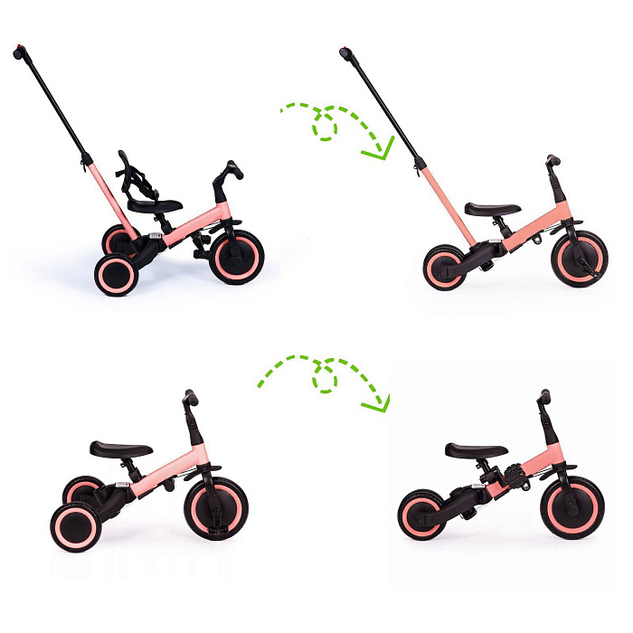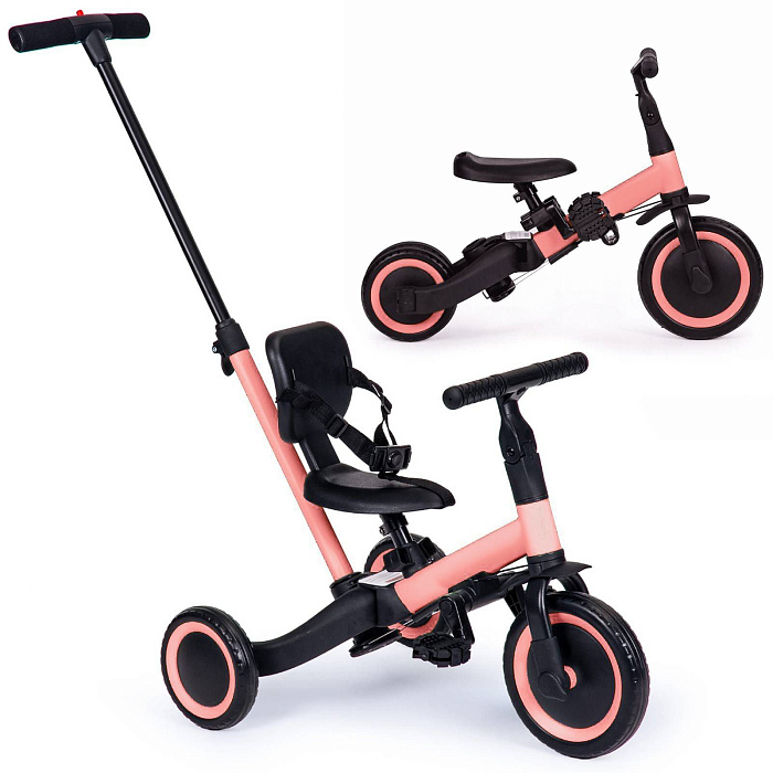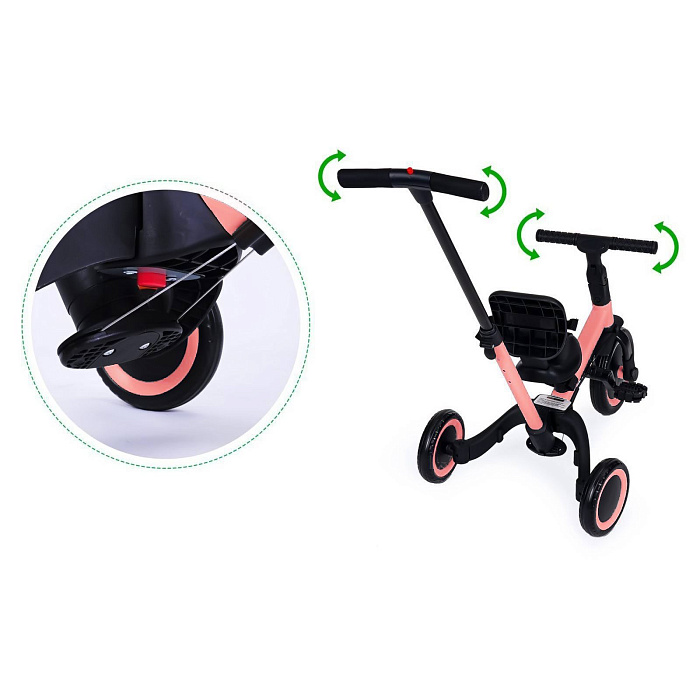 Детский беговел-велосипед 6в1 с родительской ручкой, розовый с рисунком - TR008-PINK-PAINT - это обновленная модель беговела TR007 с боковой поддержкой сиденья.