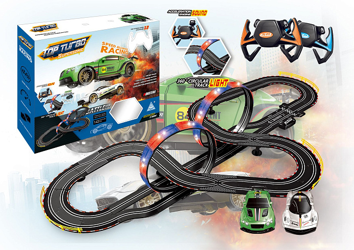 Гоночный автотрек Soba (760 см, 2 машинки на пульте, питание от сети, звук, свет) - SOBA-A47-18