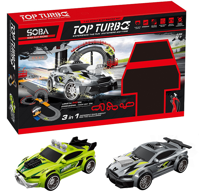 Гоночный автотрек Soba (790 см, 2 машинки на пульте, работает от сети и батареек) - SOBA-A49-10A