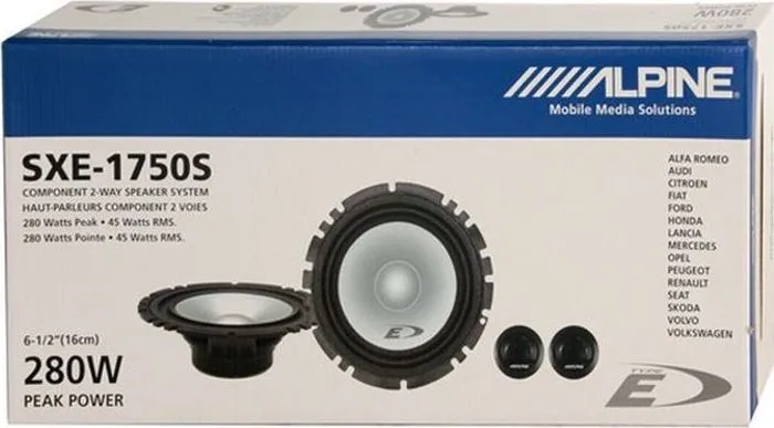 Модели из этой серии акустики имеют мощность в 45 Вт и максимальную мощность в 280 Вт. Система Alpine SXE-1750S, благодаря своей частоте от 60 Гц до 20000 Гц, может обеспечить максимальную четкость крайнего диапазона звуковых частот с хорошим распределением. Alpine SXE-1750S обладает чувствительностью звука в 90 дб. Акустическая система имеет сопротивление в 4 Ом. Акустика этой серии не имеет внешнего кроссовера, однако оснащена диффузорами из целлюлозы, которые впишутся в интерьер любого авто.