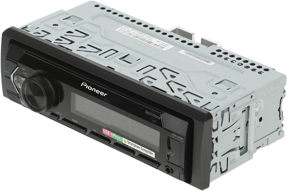 Автопроигрыватель Pioneer MVH-S125UI соответствует типоразмеру 1DIN. Номинальное напряжение питания – 12 В. Количество каналов воспроизведения стандартно – 4. Номинальная выходная мощность – 22 Вт на канал. Максимальная выходная мощность – 50 Вт на канал. Установить индивидуальные настройки звука можно посредством 5-полосного эквалайзера. Многим пользователям будет полезен радиотюнер, поддерживающий диапазоны FM и AM.