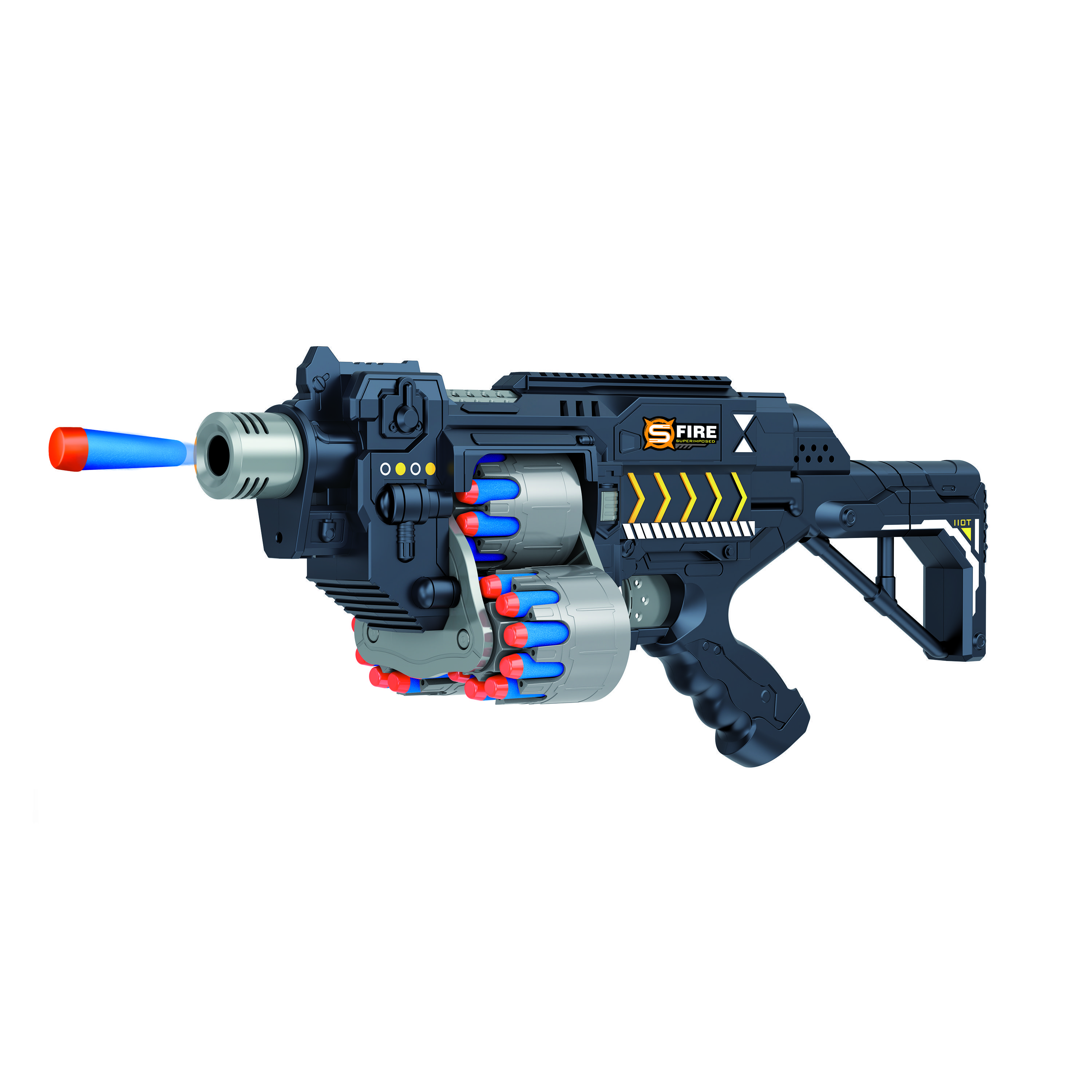 Автомат черный на батарейках с мягкими пулями - G2B - это 30-зарядный бластер на батарейках с тремя барабанами.