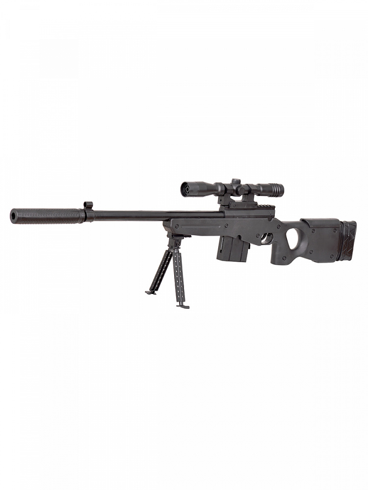 Снайперская детская винтовка M24 с глушителем является практически копией боевой огнестрельной винтовки М24, которая производится в США в калибре 7,62 Модель пневматического снайперского ружья M24 с глушителем снабжена специальным пружинно-поршневым механизмом для стрельбы пластиковыми пульками (шариками) 6 мм и стреляет на расстояние до 20 метров.