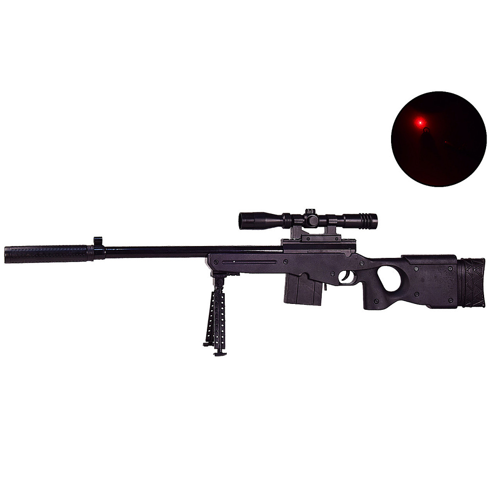 Детская снайперская винтовка M24 с глушителем и лазерным прицелом (пневматика, длина 100 см) - M03-1 - это пневматическая снайперская винтовка M24 с глушителем изготовлено из хорошего, качественного пластика имеет в комплекте оптический прицел, сошки и ремень.