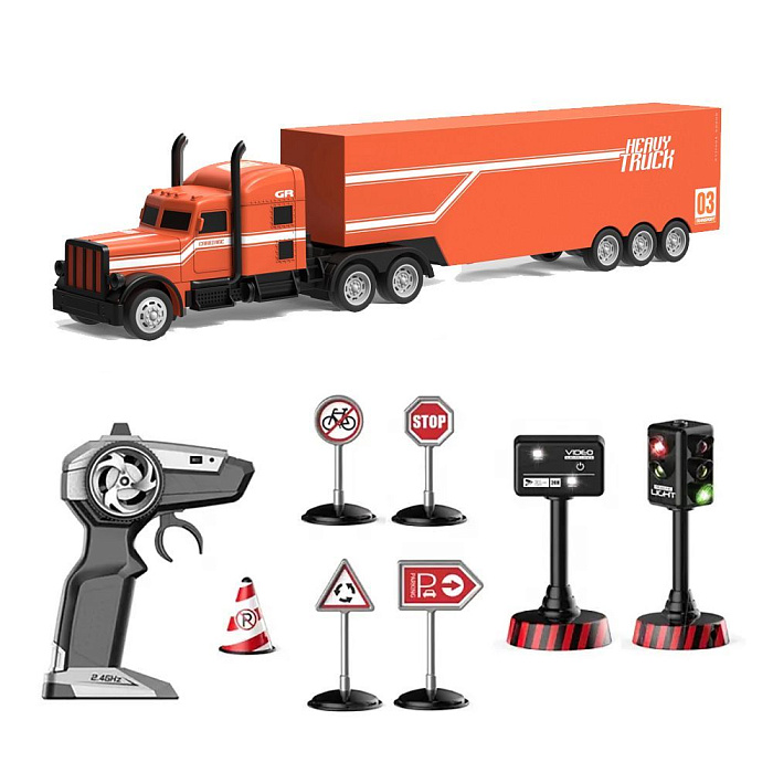 Радиоуправляемый грузовик трейлер и набор дорожных знаков (2WD, акб, 1:16) - GM1926