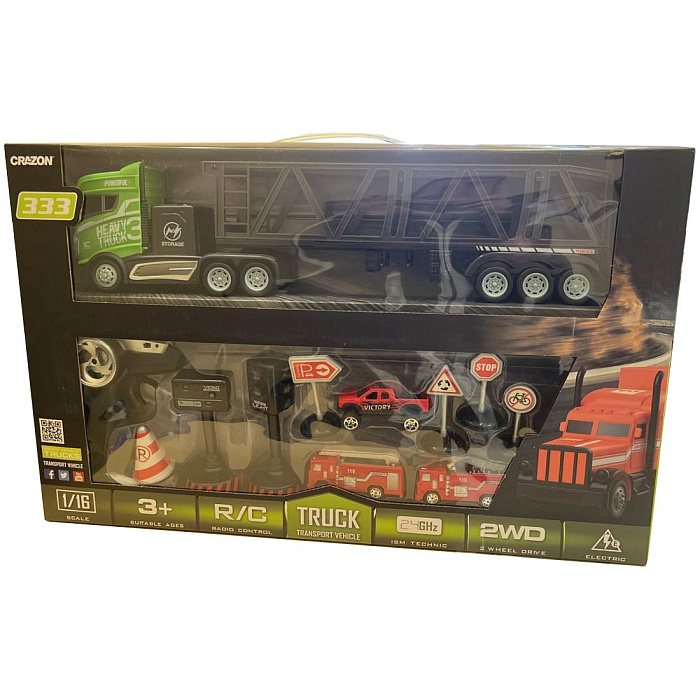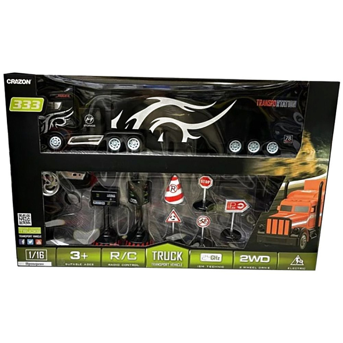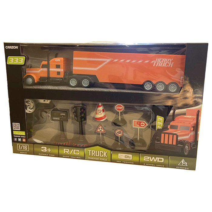 Радиоуправляемый грузовик трейлер и набор дорожных знаков (2WD, акб, 1:16) - GM1931
